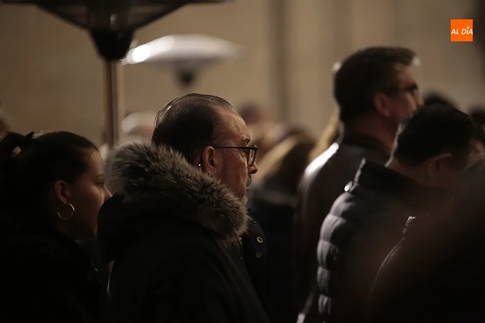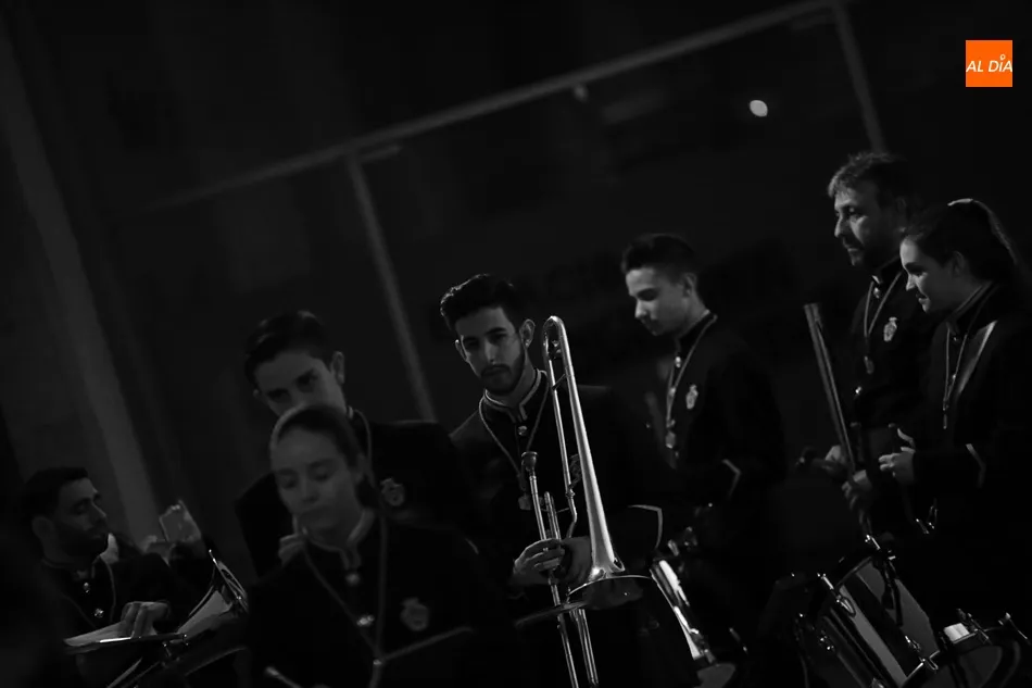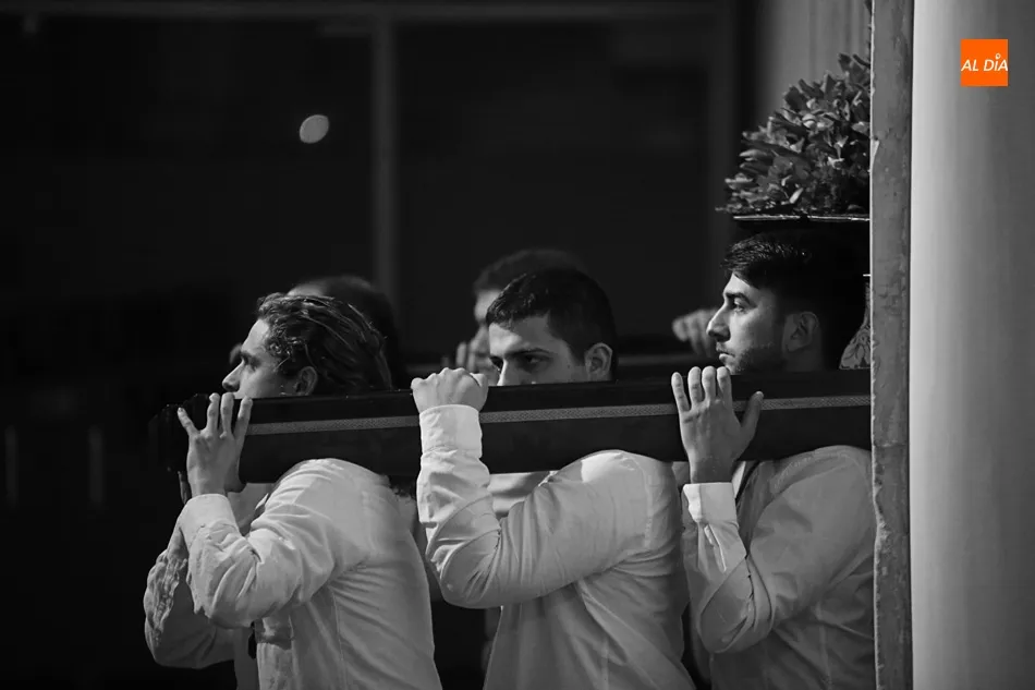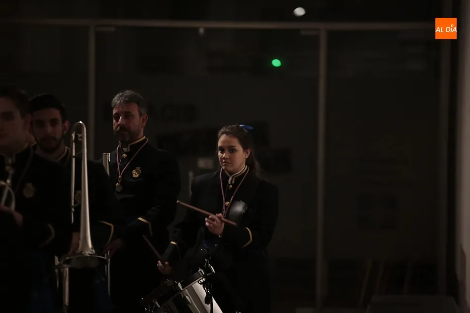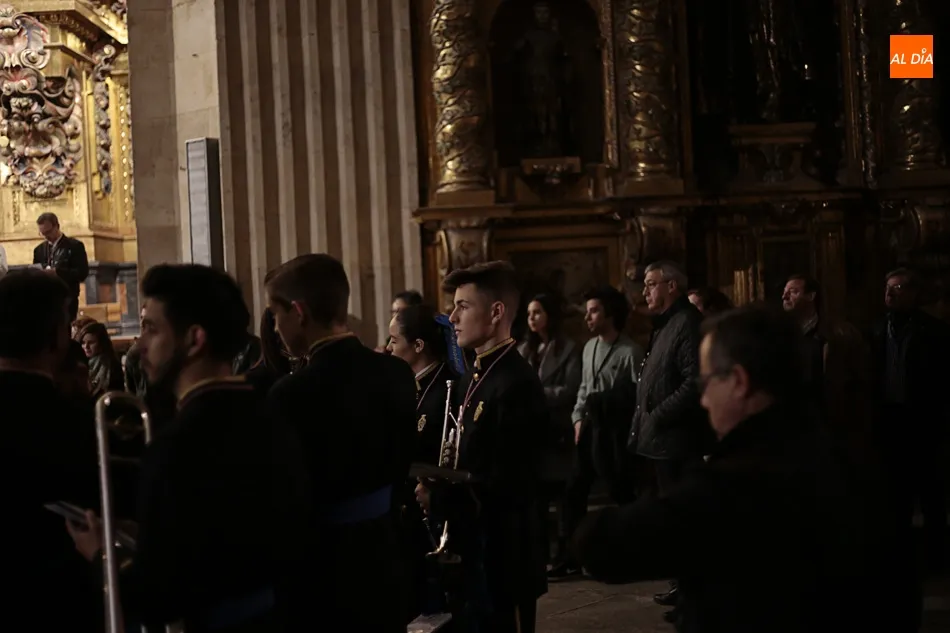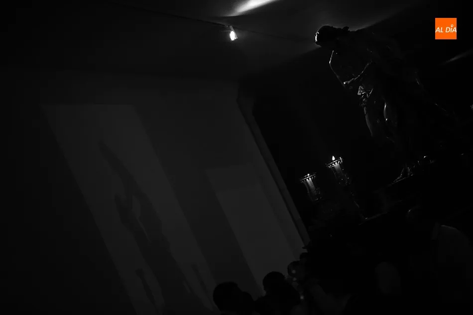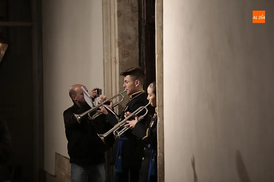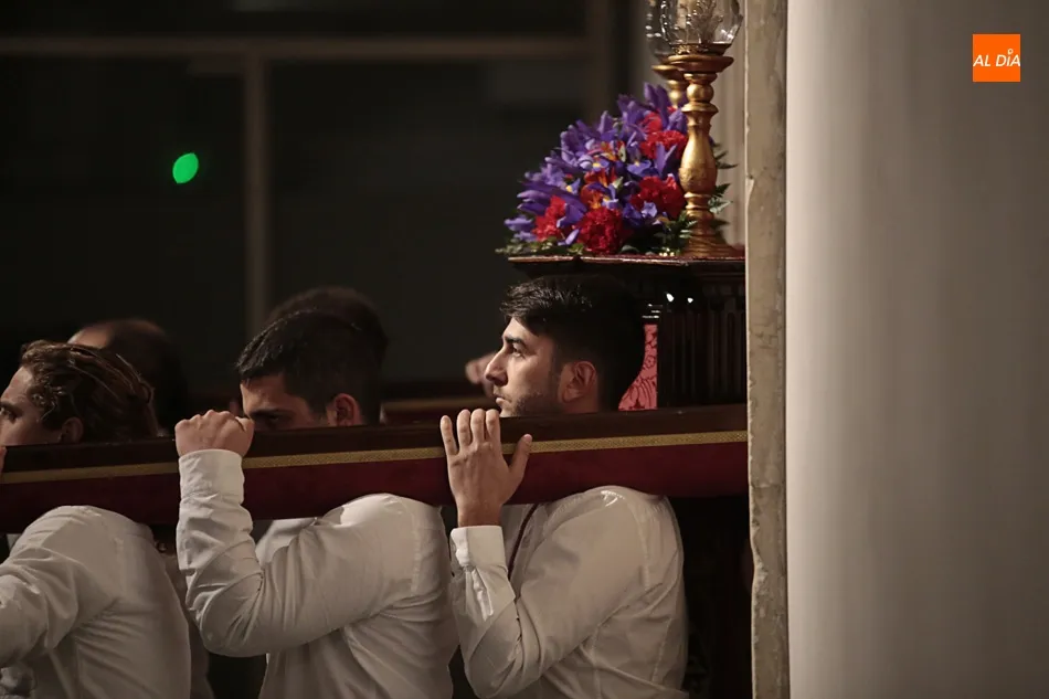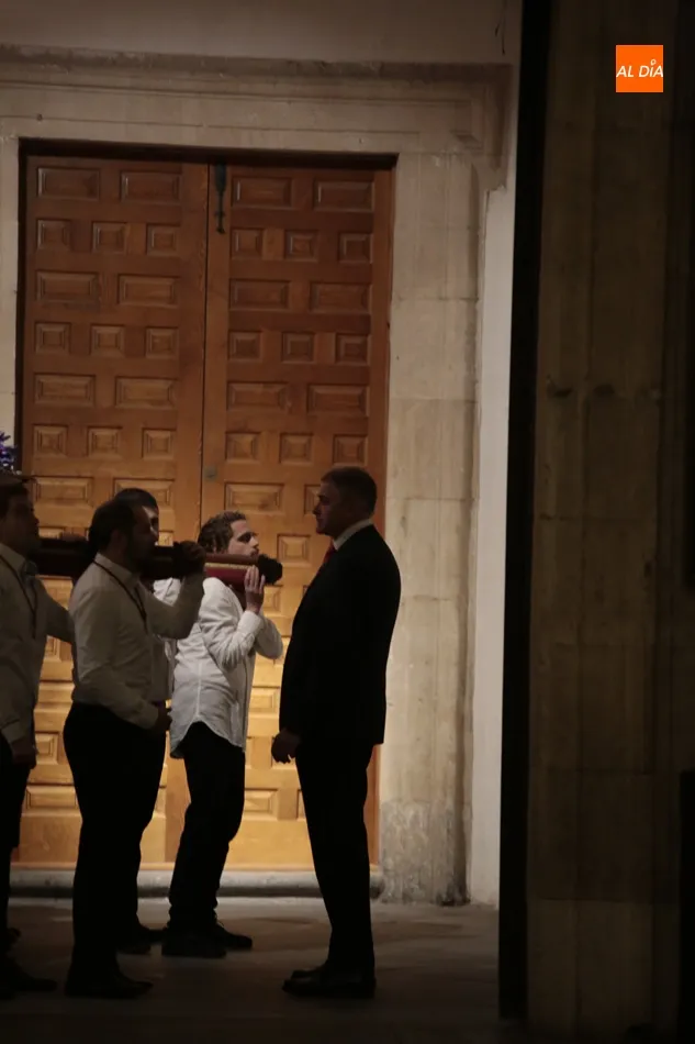 Con el acompañamiento musical de la capilla de la Agrupación Musical Virgen de la Vega y arropada por numerosos fieles y devotos, la talla de Salvador Carmona ha empezado a mecerse como avance del próximo Miércoles Santo.