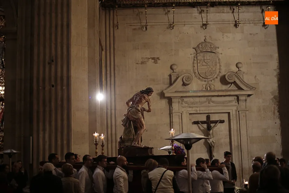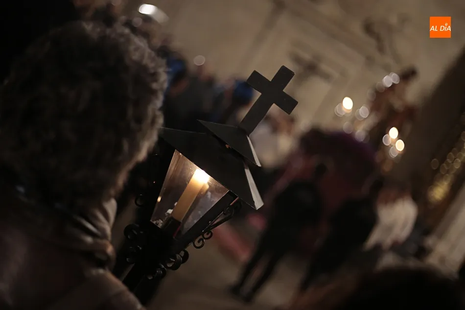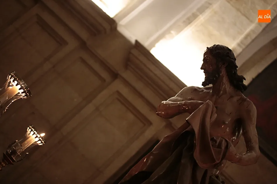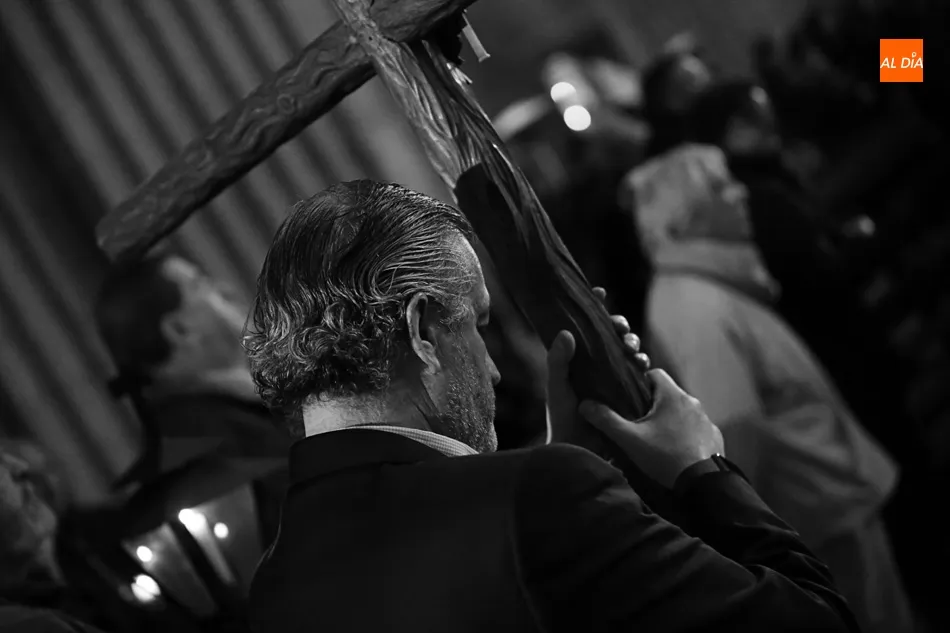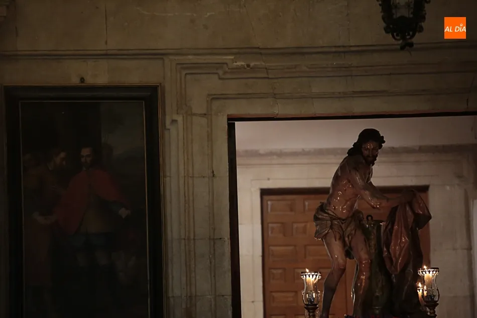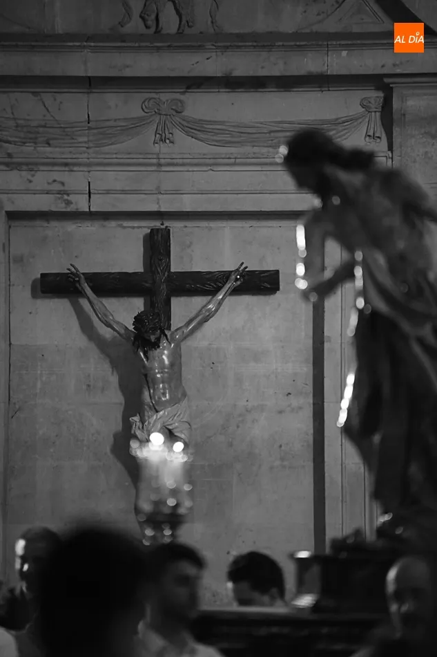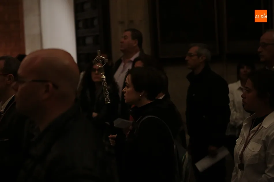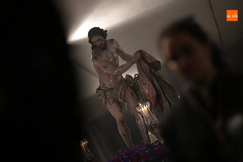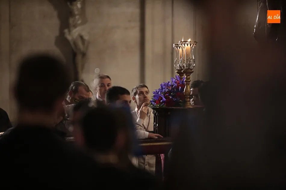 Con el acompañamiento musical de la capilla de la Agrupación Musical Virgen de la Vega y arropada por numerosos fieles y devotos, la talla de Salvador Carmona ha empezado a mecerse como avance del próximo Miércoles Santo.