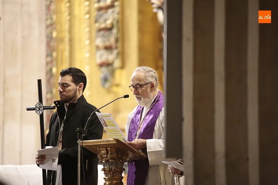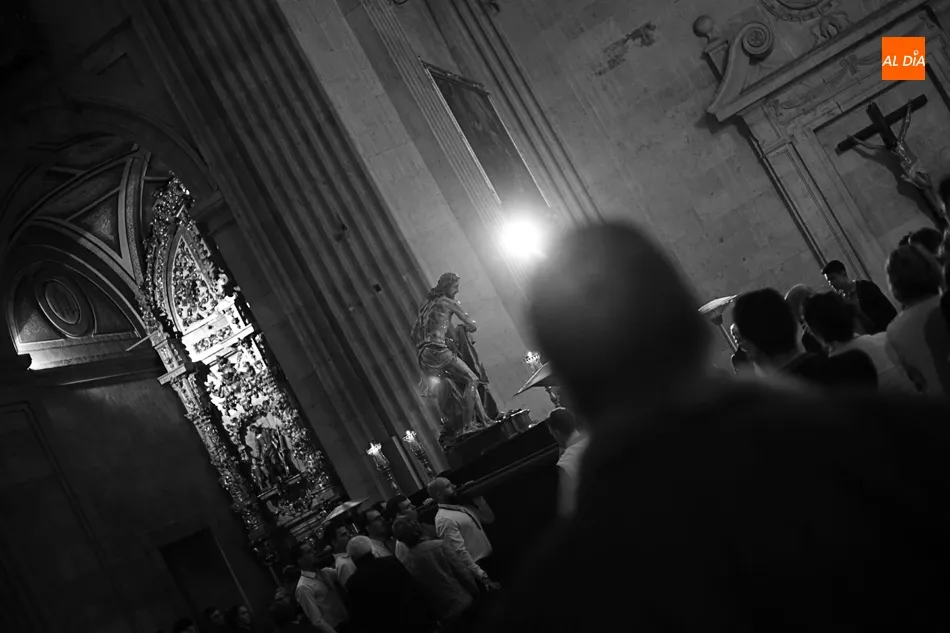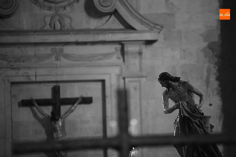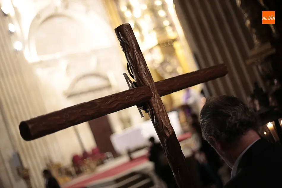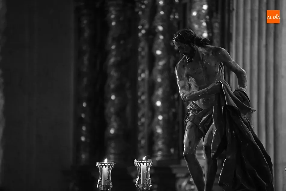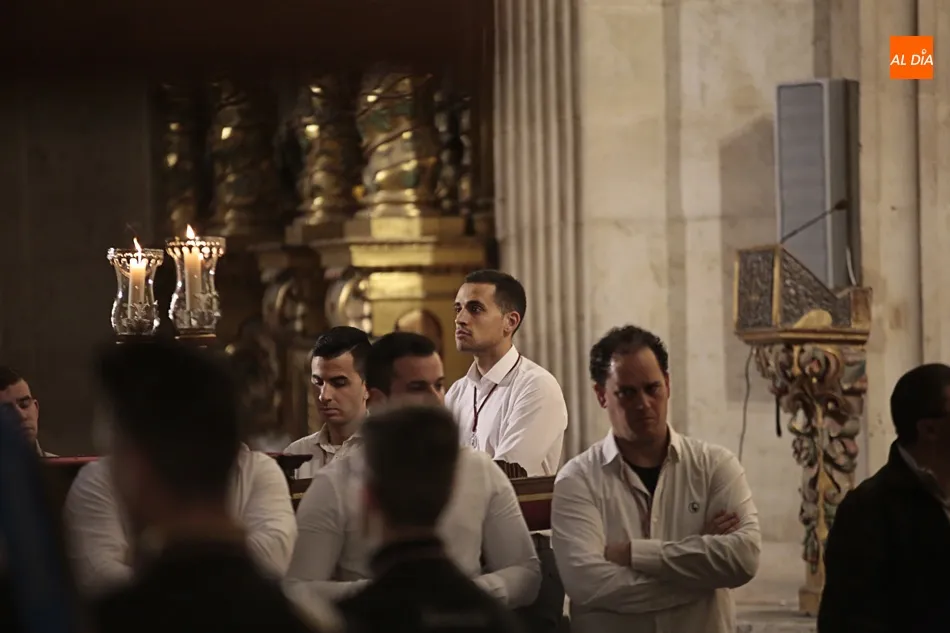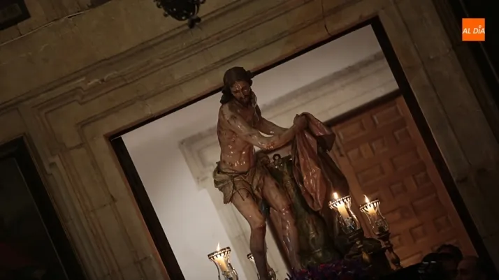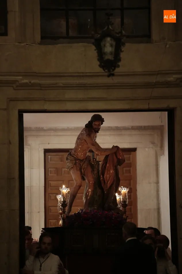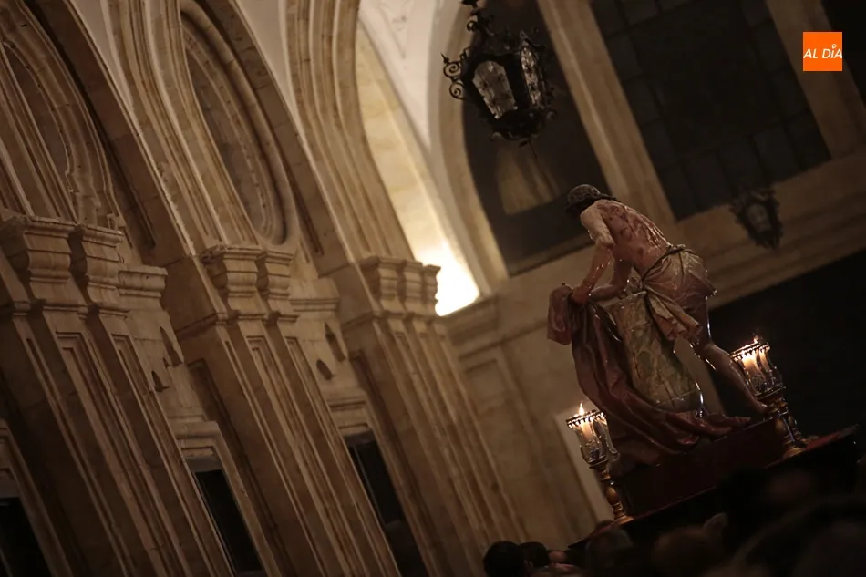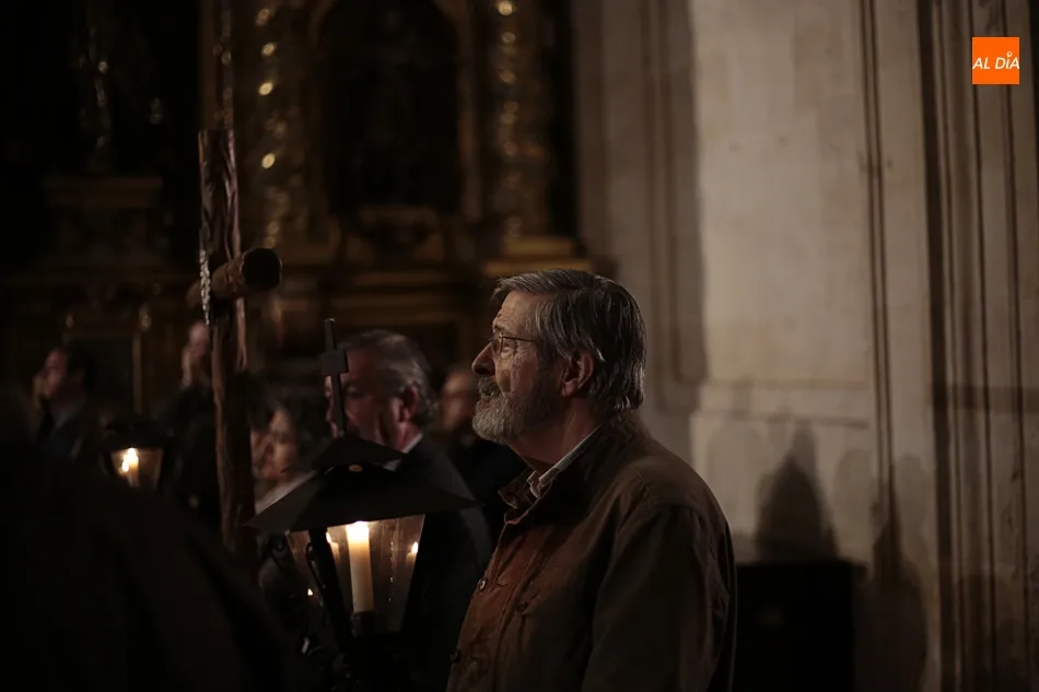 Con el acompañamiento musical de la capilla de la Agrupación Musical Virgen de la Vega y arropada por numerosos fieles y devotos, la talla de Salvador Carmona ha empezado a mecerse como avance del próximo Miércoles Santo.