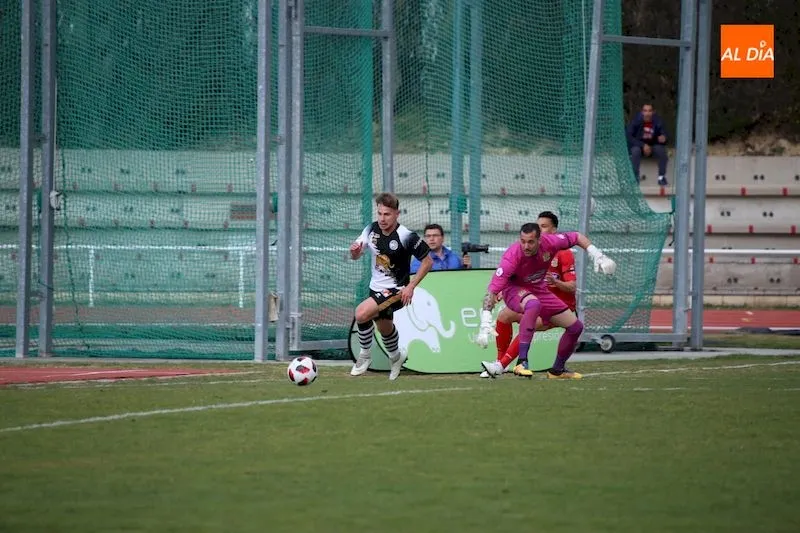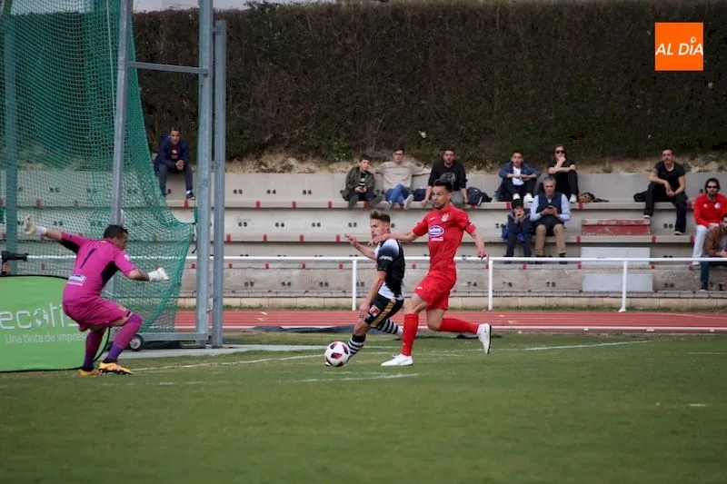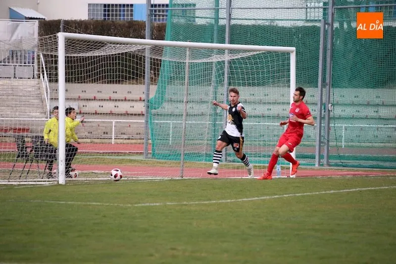 Con los jugadores blanquinegros en estado de gracia, el tercero subió al marcador antes del descanso. Un saque de esquina lanzado por Portilla que iba camino de ser gol olímpico era atajado por Biel Ribas, pero el balón, que quedaba muerto dentro del área, era enviado dentro de la portería por Garrido. La locura terminaba así de estallar en las Pistas del Helmántico antes del descanso.