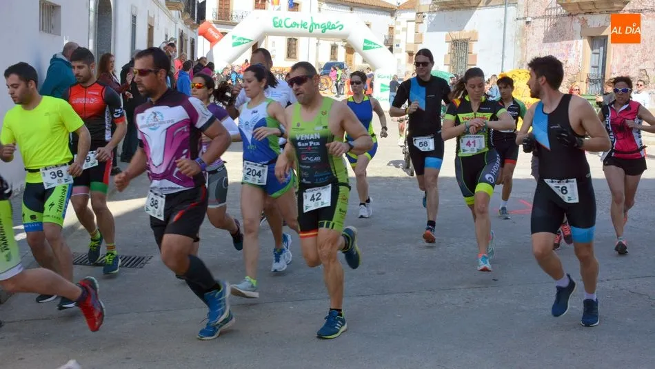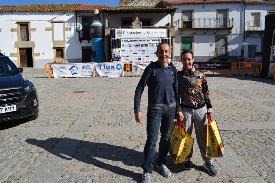 El IV Duatlón Villa de Lumbrales, organizado por el Ayuntamiento de Lumbrales y la Diputación Provincial de Salamanca, ha congregado esta mañana a más de un centenar de corredores en esta especialidad deportiva que combina el atletismo con el ciclismo. Entre los participantes, llegados de Ávila, Valladolid, Madrid y de la provincia de Salamanca, figuraban el atleta Antonio Cerezo, lider en la clasificación del Circuito de Duatlones de la Diputación de Salamanca. También, un año más, compitió en el duatlon lumbralense la atleta del Club Triatlon Charro Sonia Sánchez. A estos atletas hay que añadir varios miembros del Club Abadengo Running, recientemente creado en Lumbrales.