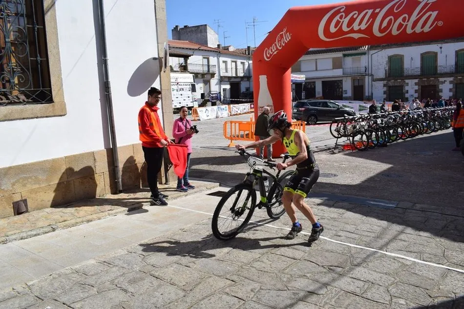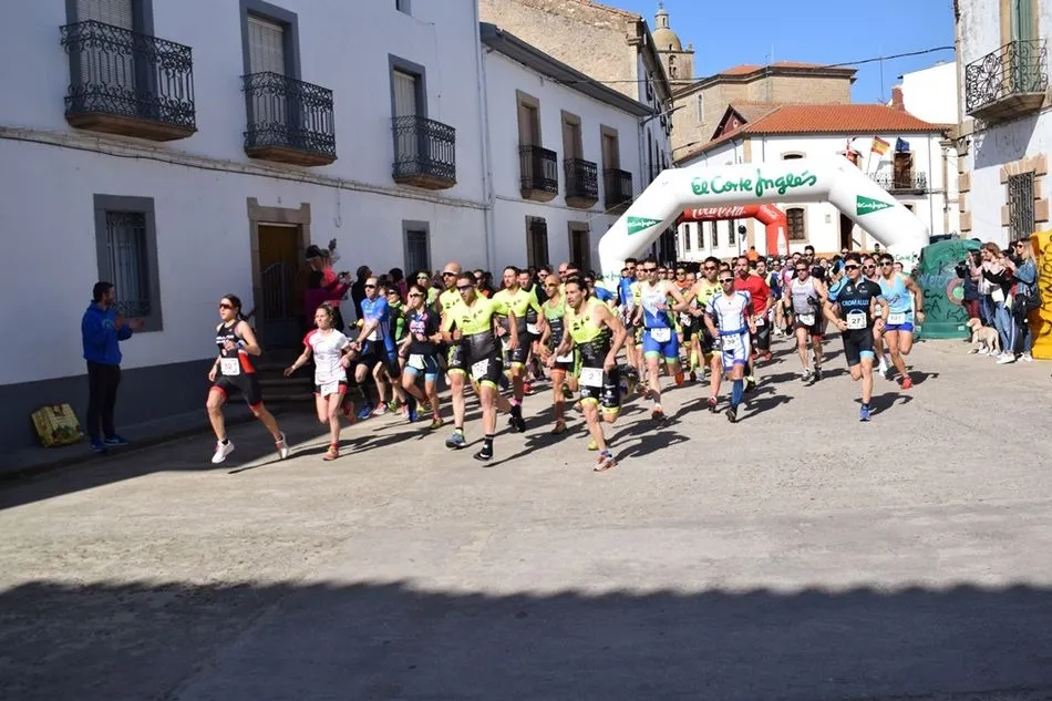 A las 10.00 horas salían de la Plaza Mayor de la villa los participantes en la categoría absoluta, dispuestos a recorrer un total de 26 kilómetros combinando la modalidad de cross, de bicicleta MTB y un último tramo de cross. En la primera zona, los corredores dieron 2 vueltas al circuito urbano, completando los primeros 4 kilómetros del recorrido. De nuevo en la Plaza, los corredores cogieron las bicicleta MTB para recorrer una distancia de 20 kilómetros que les llevó desde la plaza de La Barrera al camino de Hinojosa, el paraje de la Fuente Blanca, la ermita de San Gregorio y después de atravesar por las viñas, regresaron al pueblo por el Camino de los Pobres. Tras dejar la bicicleta, los atletas hicieron un último recorrido de cross de 2 kilómetros más. Todo este recorrido se realizó en menos de 1 horas y 50 minutos.