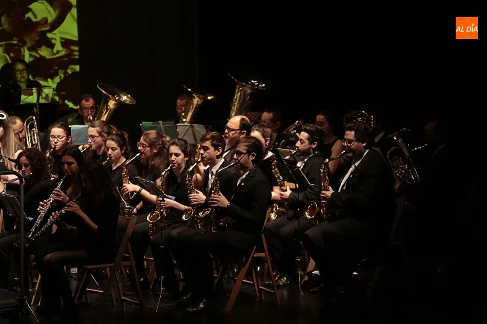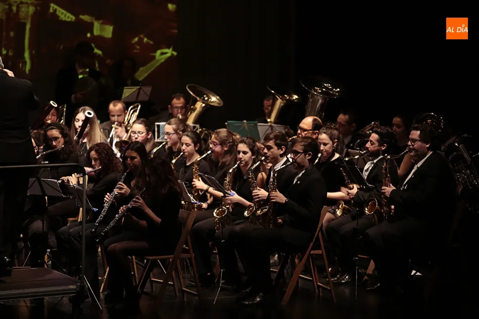 Y de sonidos e imágenes, y, ante todo, de música ha tratado la celebración de estos cien años en el teatro Unicaja, con un recorrido por todos los estilos y épocas, desde la composición más antigua a la más moderna, a cargo de la Banda de Música de Alba de Tormes.