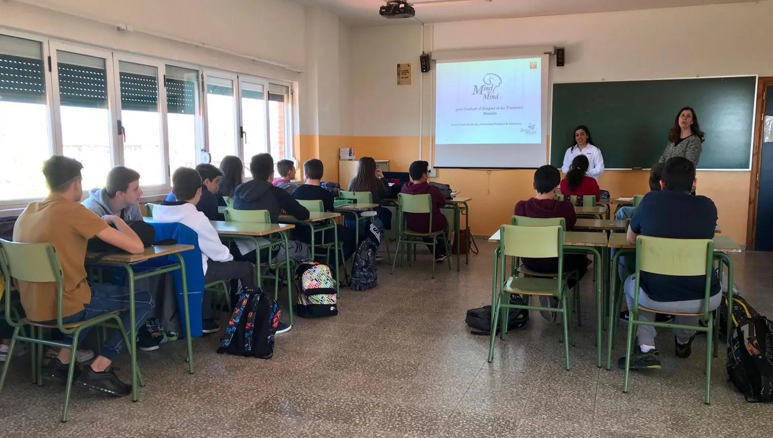 La antigua alumna del IES Fray Diego Tadeo Laura Cuadrado Moreno regresó el pasado viernes al centro para ofrecer una serie de talleres sobre los trastornos mentales. Laura Cuadrado, actual estudiante de 4º de Psicología en la Universidad Pontificia de Salamanca, impartió estos talleres en el marco de la campaña Mind the Mind que promueve en toda Europa la Federación Europea de Asociaciones de Estudiantes de Psicología (EFPSA) para intentar acabar con el estigma de este tipo de trastornos.