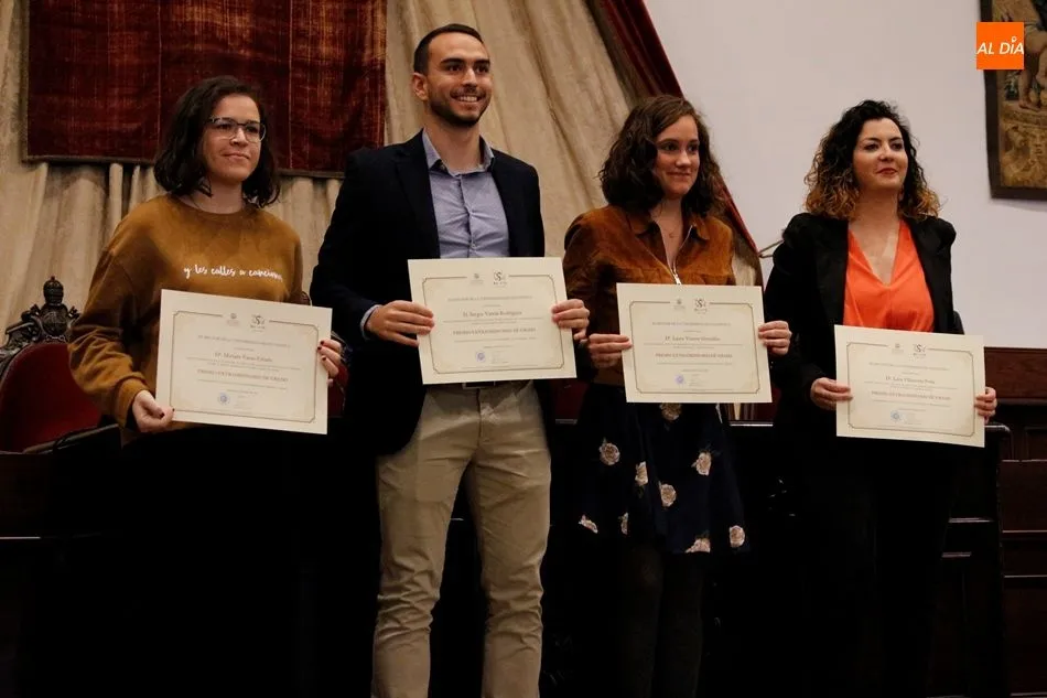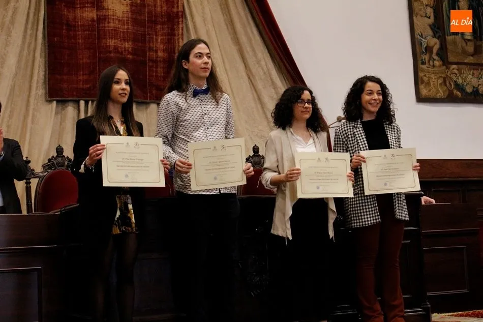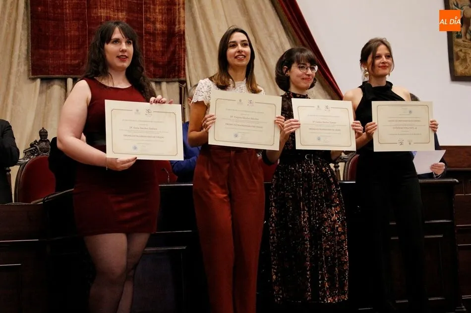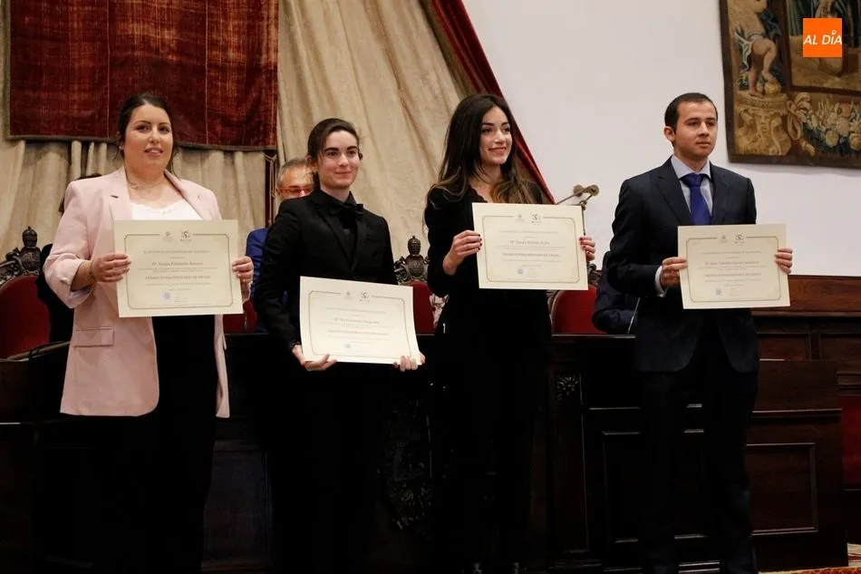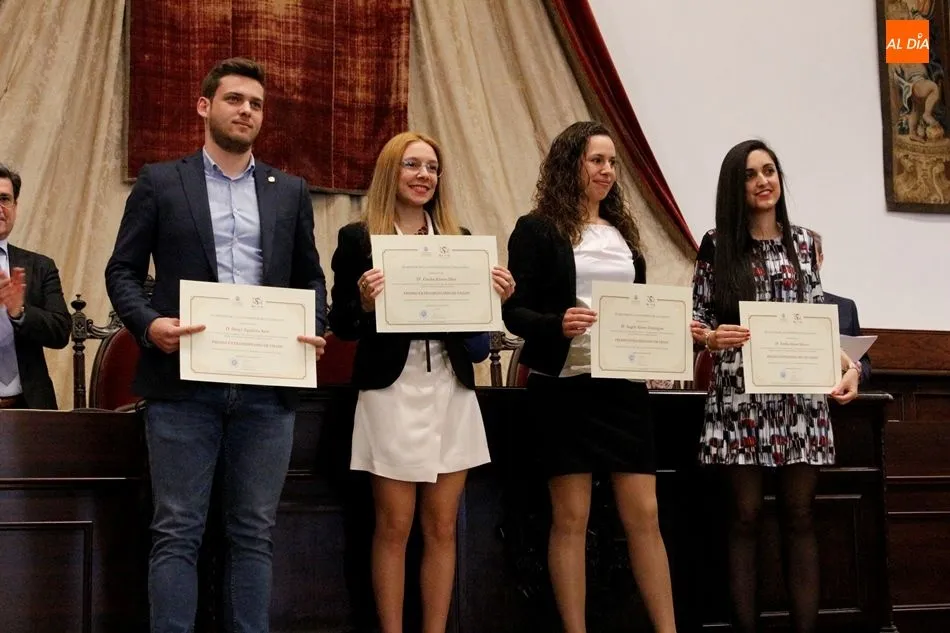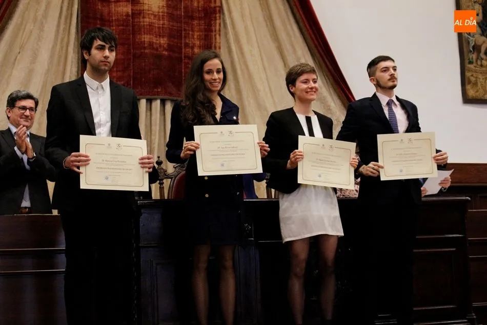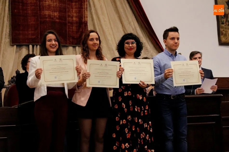 El Premio Extraordinario, que se concede a un alumno por cada 50 egresados de los distintos programas de Grado y Máster que ofrece la USAL, y a una tesis ?cum laude? de cada cinco leídas por área de conocimiento, consiste en un diploma acreditativo expedido por el rector de la Universidad de Salamanca, así como la inclusión en el expediente del estudiante de una mención del premio otorgado, constando en las certificaciones académicas, así como en los documentos oficiales contemplados por la normativa.