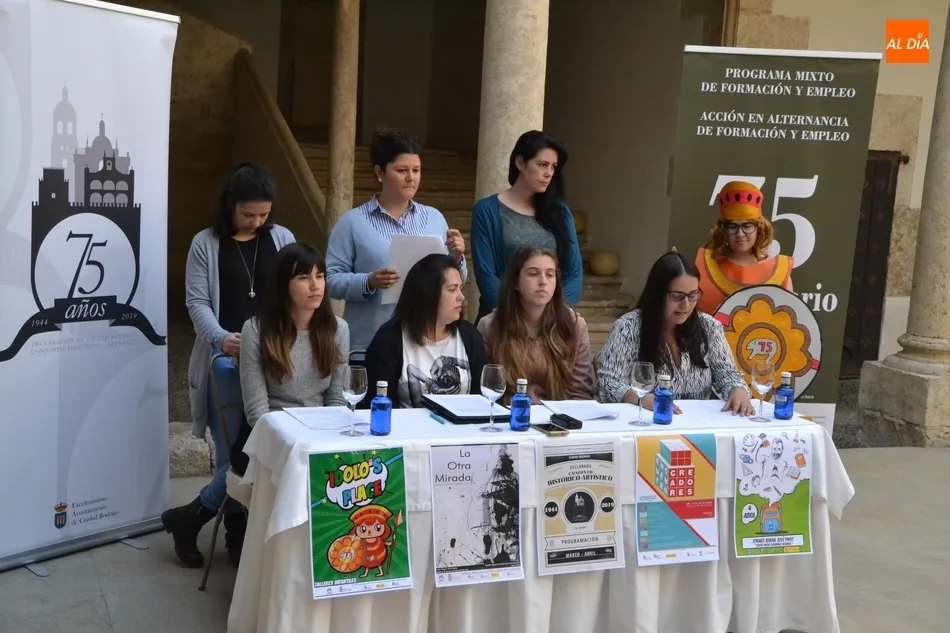 Las alumnas de la Acción Formativa 75 Aniversario presentaron en la mañana del miércoles las actividades que tendrán lugar bajo su organización durante el próximo mes (hasta el 20 de abril) para celebrar los 3/4 de siglo que se cumplen de la Declaración de Ciudad Rodrigo como Conjunto Histórico-Artístico.