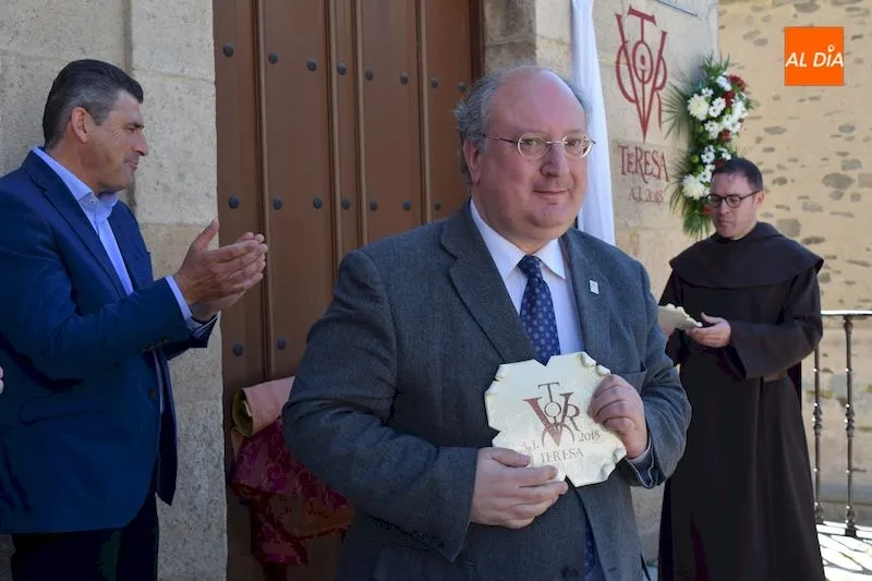 Con motivo del día del nacimiento de Santa Teresa de Jesús, Alba de Tormes acogió esta mañana una jornada repleta de actos en honor de la patrona de la villa ducal. El más destacado de todos ellos fue la inauguración en la fachada de la Iglesia de San Juan de la Cruz de un Vítor conmemorativo de la exposición Vítor Teresa y del Año Jubilar Teresiano.