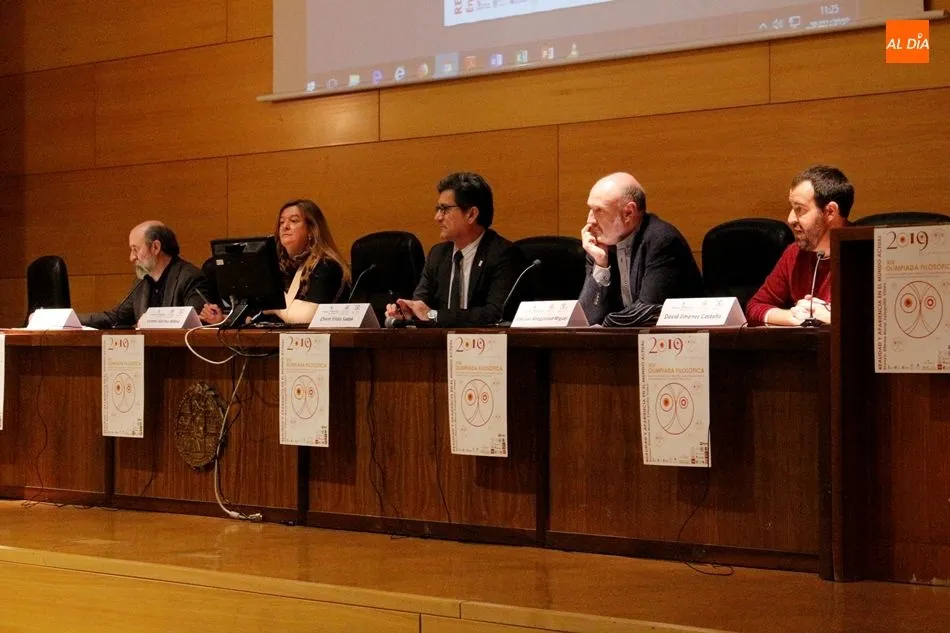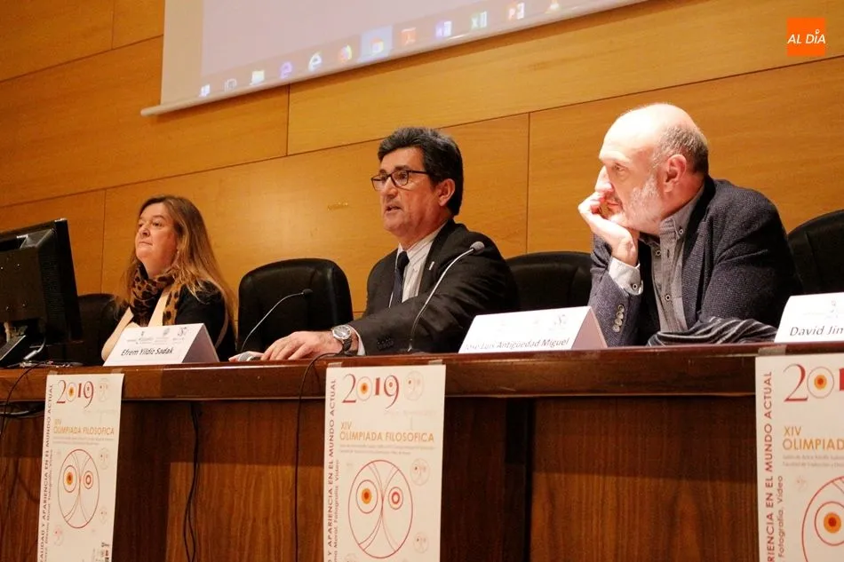 En el acto de inauguración estuvieron Efrem Yildiz, vicerrector de Relaciones Internacionales; Ángel Morín, director provincial de Educación de Salamanca; Antonio Notario, decano de la Facultad de Filosofía; y David Jiménez, presidente de la Asociación Olimpiada Filosófica de Castilla y León.