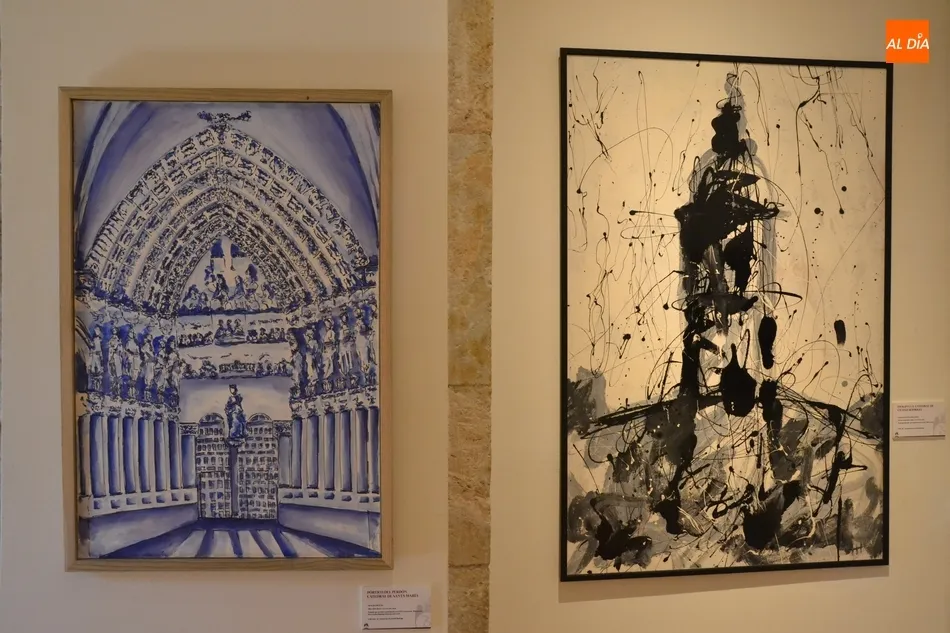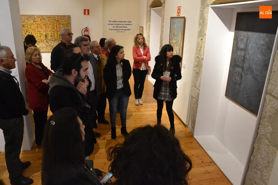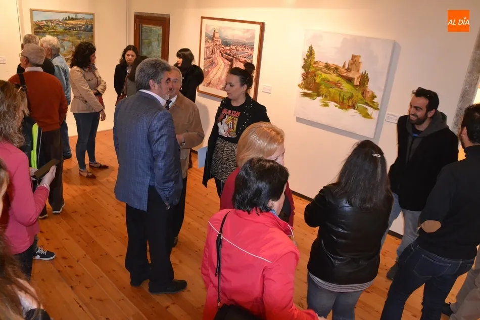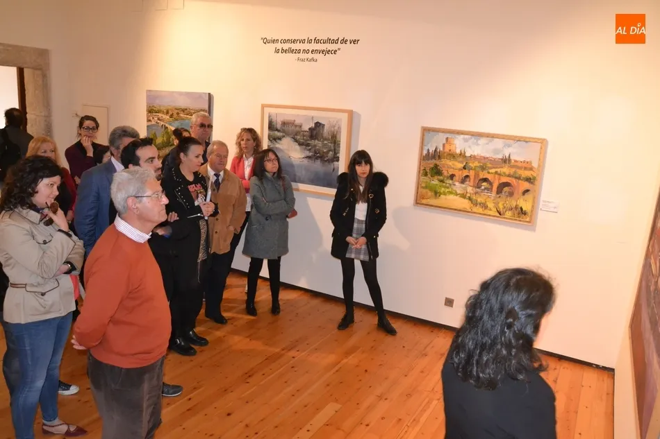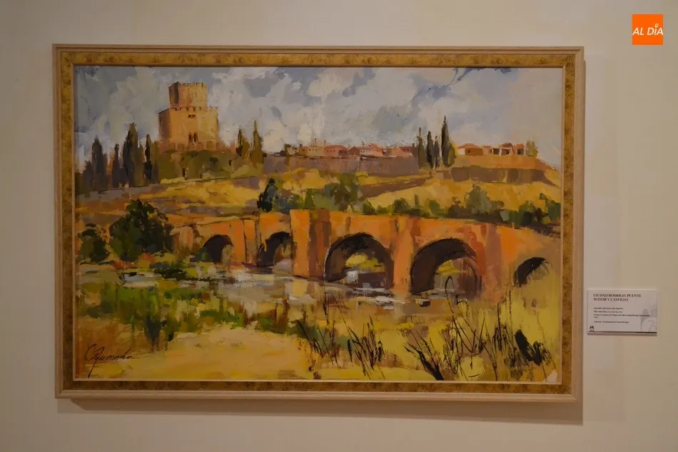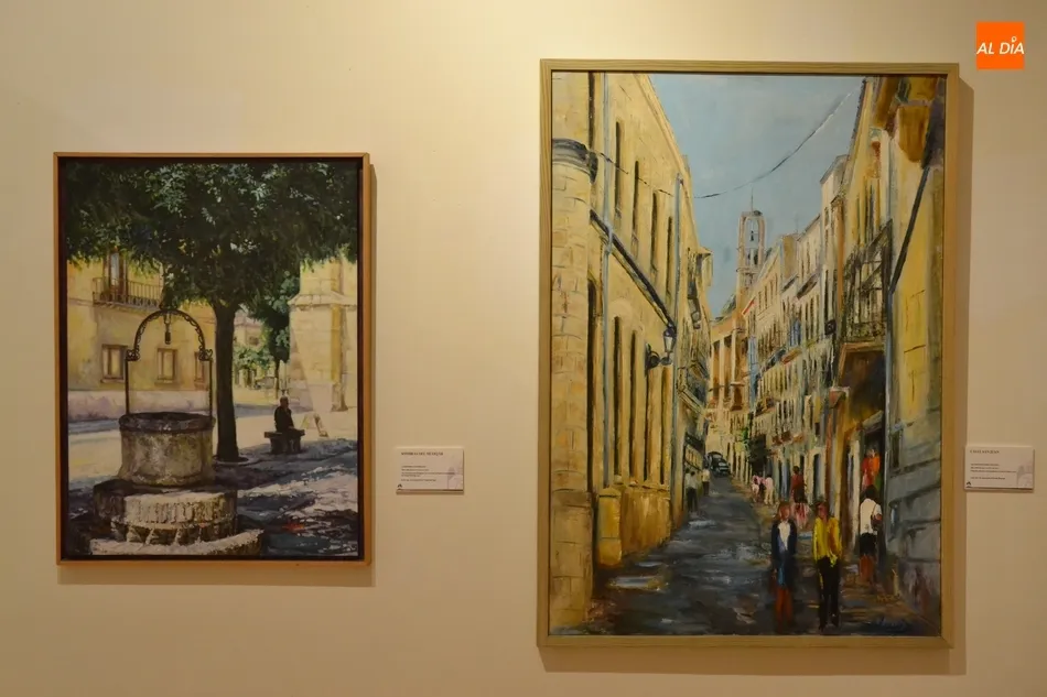 Según explicaron las guías, esa parte pictórica consta de dos salas y cuatro espacios, empezando con varios cuadros de la Catedral y la Muralla. Por otro lado, hay una serie de cuadros agrupados bajo el epígrafe ?Caminando por Ciudad Rodrigo? (aparecen personas paseando por varios puntos), y una serie de obras de lugares de fuera del casco histórico (como el Puente Mayor, el Parque de La Florida o las III Columnas).