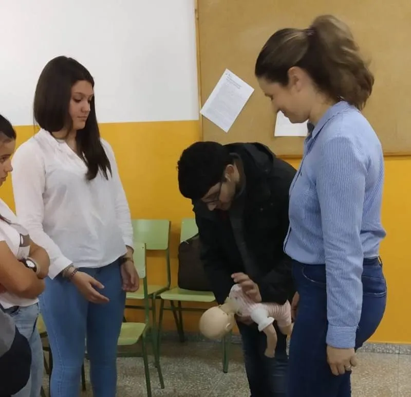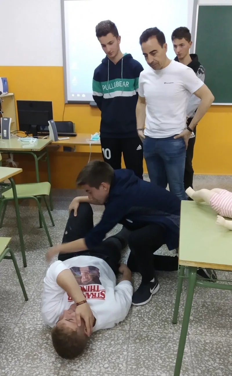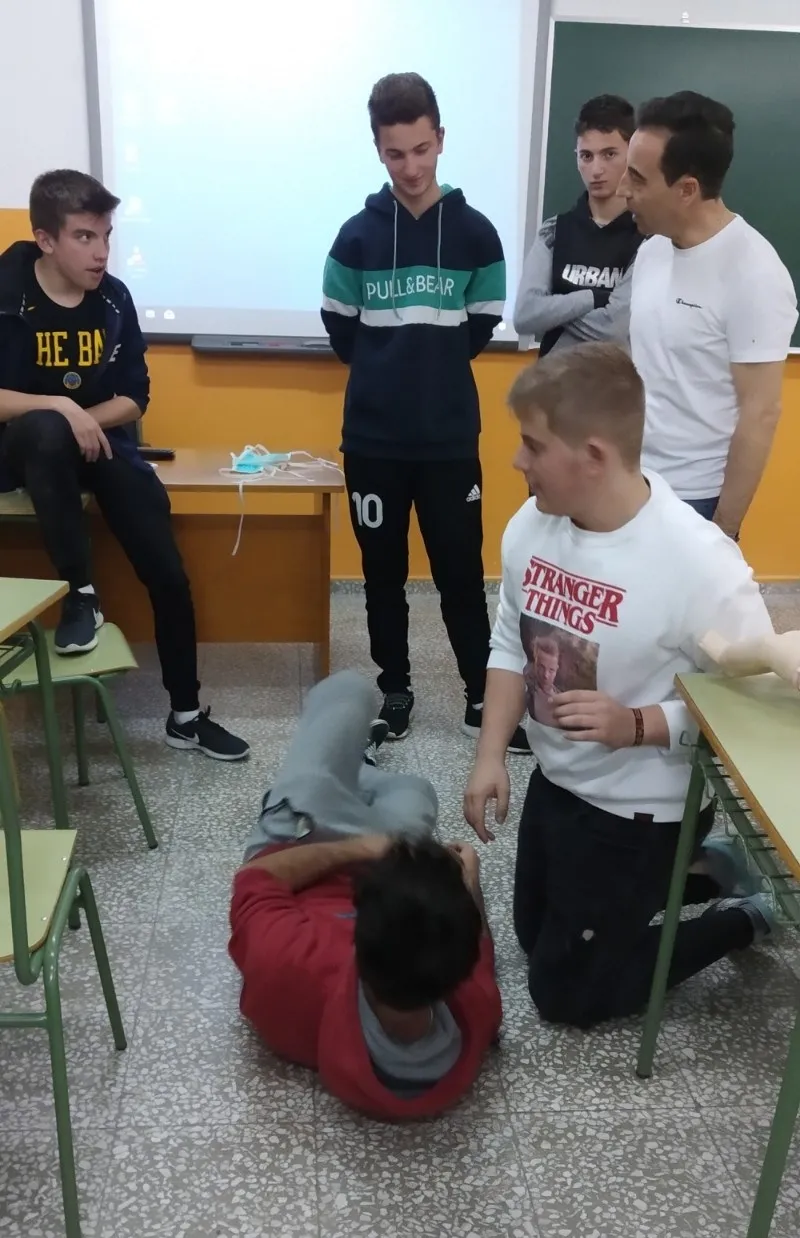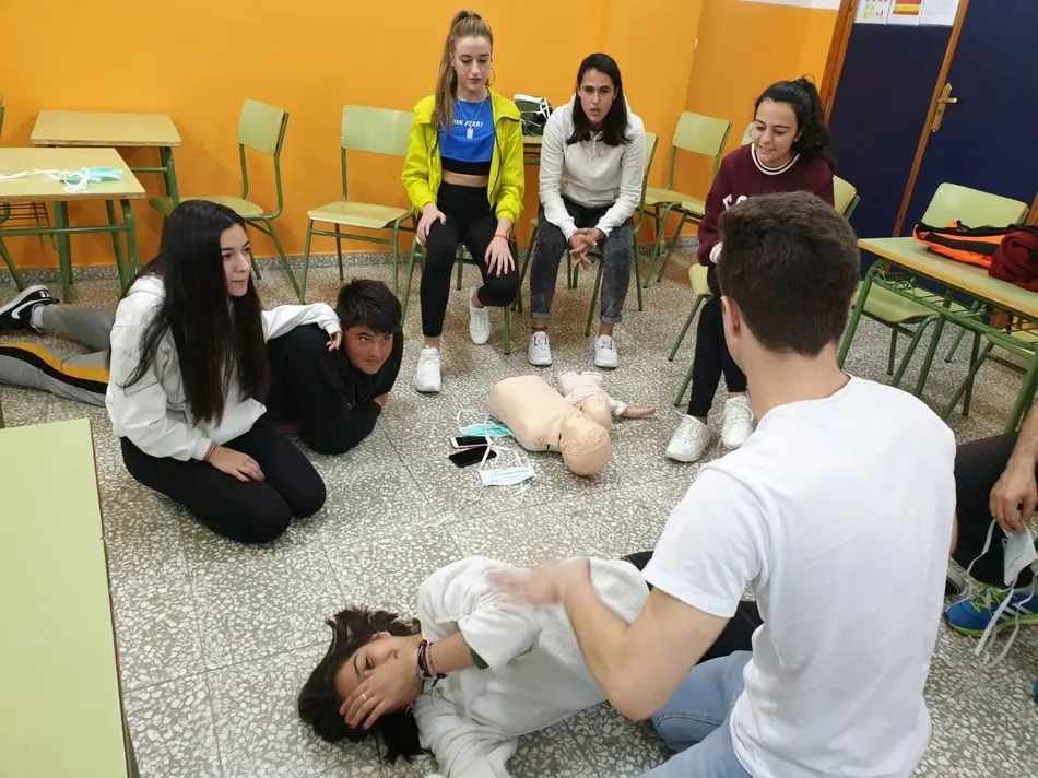 Los destinatarios concretos del taller (promovido por la Asociación de Madres y Padres Julián Sánchez El Charro) fueron, como en años anteriores, los alumnos que están este curso en 4º de la ESO. Repartidos en dos grupos, los alumnos recibieron formación tanto teórica como práctica por parte del equipo dirigido por Pedro Gómez de Quero, instructor y director de reanimación cardiopulmonar.