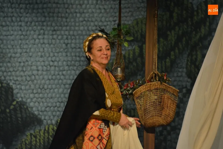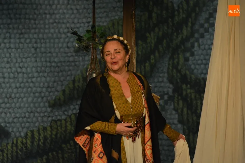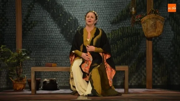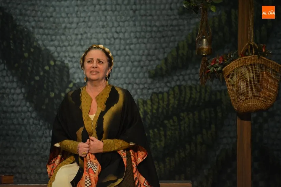 La actriz Gloria Muñoz interpreta el papel de Francisca Pizarro y está acompañada en el escenario por Julián Ortega, Manuel Lavandera y Silvina Tabbush