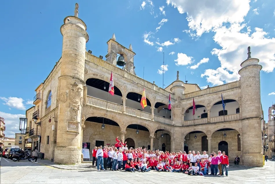 La jornada de convivencia comenzó en el Hotel Conde Rodrigo II, donde hubo una sesión de bienvenida antes de desplazarse los presentes al núcleo urbano de Ciudad Rodrigo para llevar a cabo una gymkana, que culminó con la realización de una gran foto de familia a los pies de la Casa Consistorial antes de irse a comer.