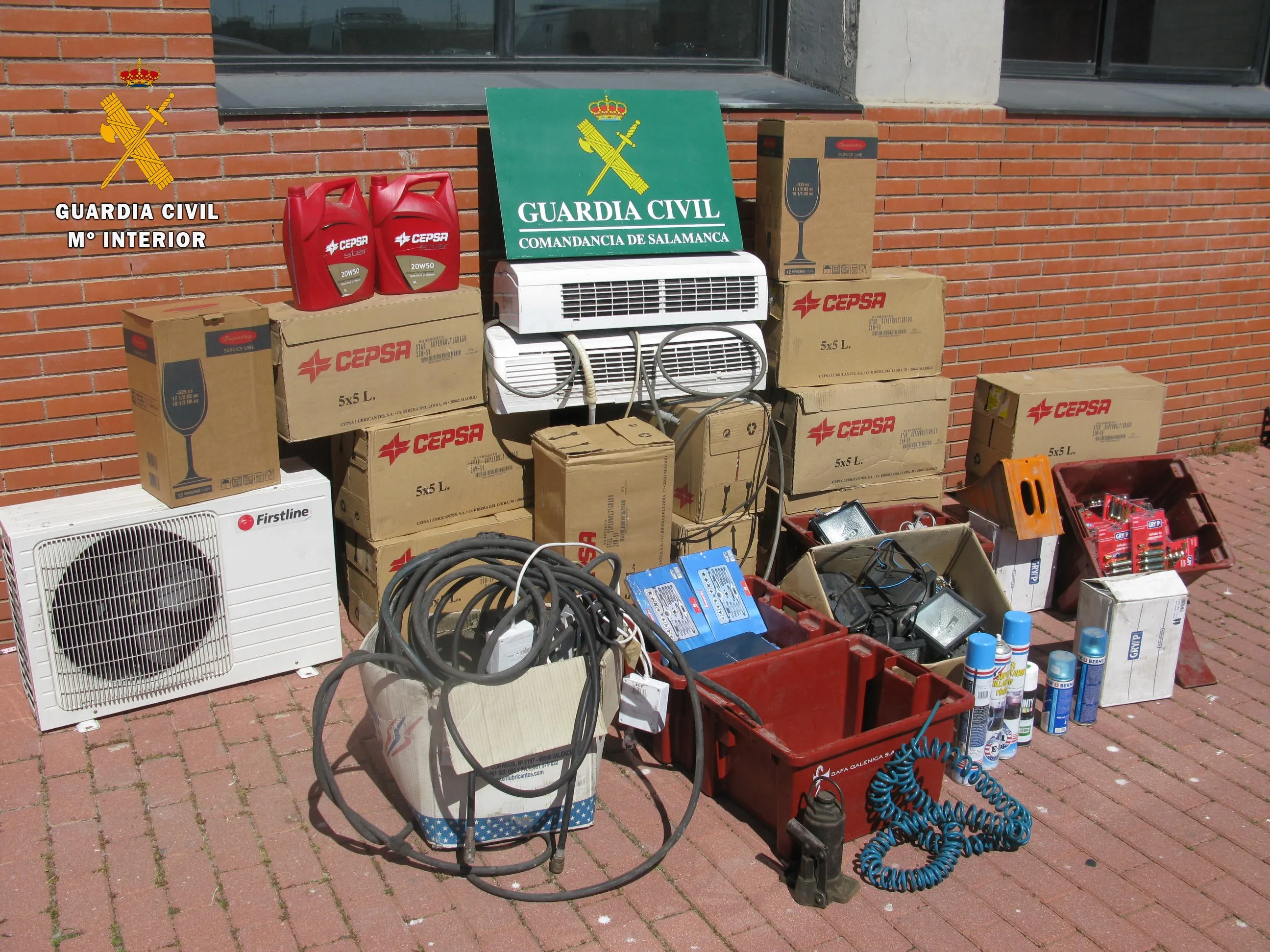 Ante la posibilidad de que el sospechoso hiciera desaparecer los citados efectos sustraidos, el 28 de marzo se llevó a cabo el registro de una vivienda en la localidad de Salamanca, pudiendose recuperar diversos efectos sustraidos en la propiedad de Mozarbez, entre los que destacan dos equipos de aire acondicionado y doce cajas de lubricante de vehículos.