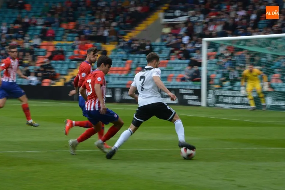 Con el paso de los minutos, el Atlético ?B? empezó a encontrar espacios y Camello, que se ?comió? en velocidad a tres defensores locales, se plantó ante Sotres, pero el cántabro detuvo con la pierna una de las ocasiones más claras de todo el encuentro.