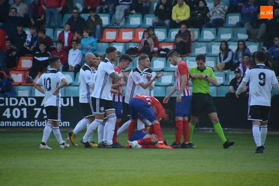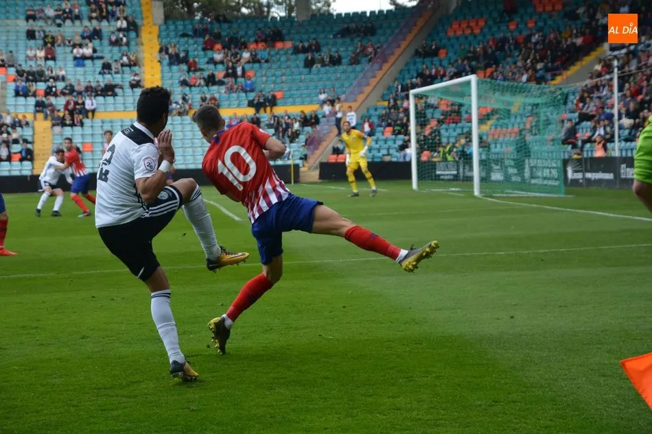 El Atlético de Madrid le sacó los colores al Salamanca UDS en el Helmántico (0-2). No hay que buscar excusas. El conjunto blanquinegro fue incapaz de generar peligro al marco colchonero y acabó derrotado por uno de los mejores filiales de Europa tras los goles de Óscar Pinchi y Camello. Mientras, la roja directa que vio Santi Luque acabó siendo la condena de un equipo que no hizo ningún mérito para lograr puntuar en su feudo y alejarse de los puestos de descenso, a pesar de que el arbitraje estuvo muy discutido por el respetable del coliseo charro.