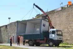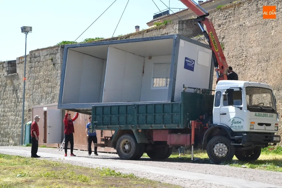 Estas casetas que aún sobrevivían eran las dobles que 8 peñas mirobrigenses habían alquilado a una misma empresa, Turocasetas. A lo largo de la mañana sabatina, miembros de esta empresa se las fueron llevando bloque a bloque, para lo que fue necesario que el camión que las fue transportando se introdujese en dirección contraria por la Rúa del Sol (desde la Avenida Conde de Foxá) para poder llegar hasta el Paseo Fernando Arrabal.