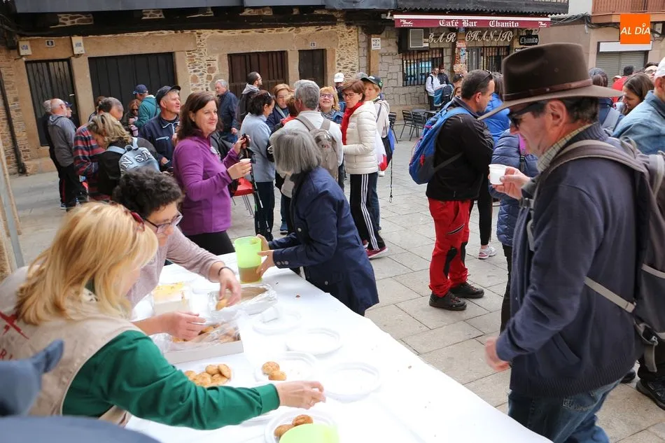 Antes de comenzar la caminata, se ofreció un convite a base de dulces típicos y aguardiente para tomar fuerzas para afrontar el camino. Con buena meteorología y temperaturas muy agradables, se comenzó a caminar, guiados en todo momento por María José Pérez, guía de naturaleza de la Casa del Parque Las Batuecas Sierra de Francia, experta en la zona y que explicó todos los detalles de las especies que tan buen aspecto ofrecen en primavera. Tras adentrarse en pleno Parque Natural, el grupo de senderistas hizo un alto en el camino para comer y finalmente regresar a Sotoserrano, desde donde regresaron a sus hogares, muchos con la promesa de repetir en próximas convocatorias.