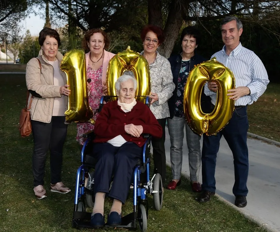 Tomasa Estébanez, viuda de D. Antonio Santos Limia (jefe los Silos de Alba de Tormes), cumplió ayer 100 años y su familia no quiso dejar pasar este momento tan especial para celebrar una fiesta en la Residencia Usera de Salamanca. Tomasa es natural de Toro (Zamora), aunque gran parte de su vida la pasó en Alba de Tormes.