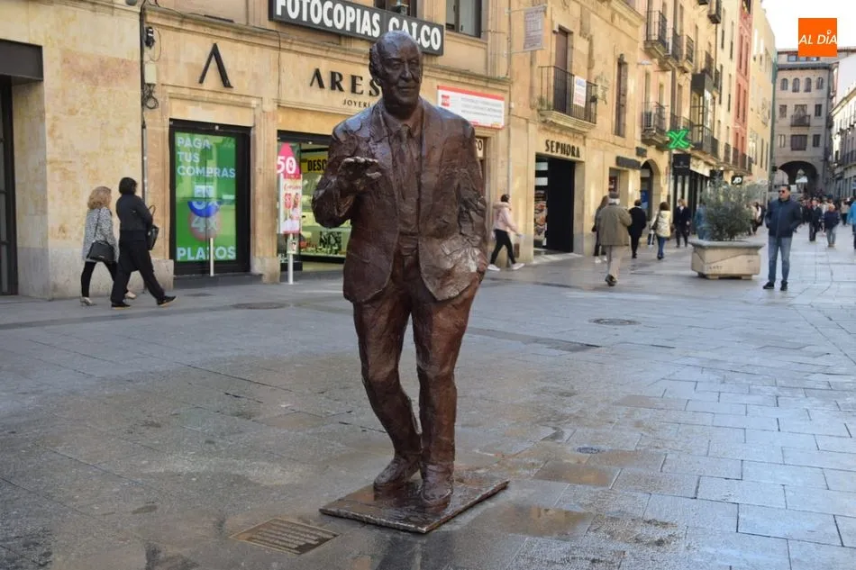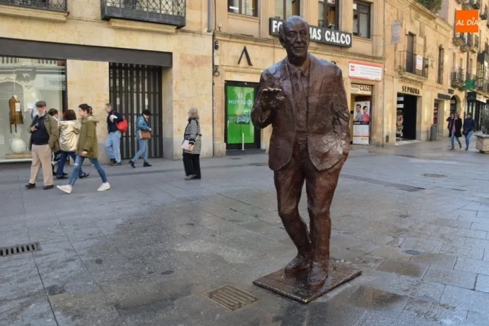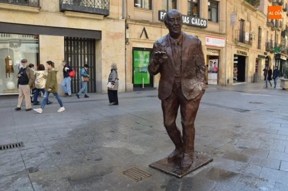 Un nuevo acto vandálico se ha producido en Salamanca, ya que la estatua de Vicente del Bosque -junto al Liceo- ha amanecido con pintadas, la más destacable con la intención de hacerle un bigote.