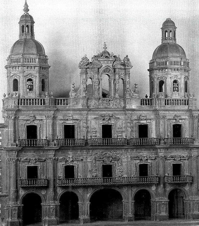 A partir de 1729, los arquitectos españoles, primero Alberto de Churriguera y más tarde Andrés García de Quiñones, crearon una obra monumental que hoy conocemos como Plaza Mayor de Salamanca. Construida para una pequeña colectividad situada en la llanura occidental de Castilla, cuyas industrias de curtido de cueros y conservación de carnes dependían de una economía agropecuaria, que los arquitectos desarrollan en una obra pública a la usanza del barroco francés.