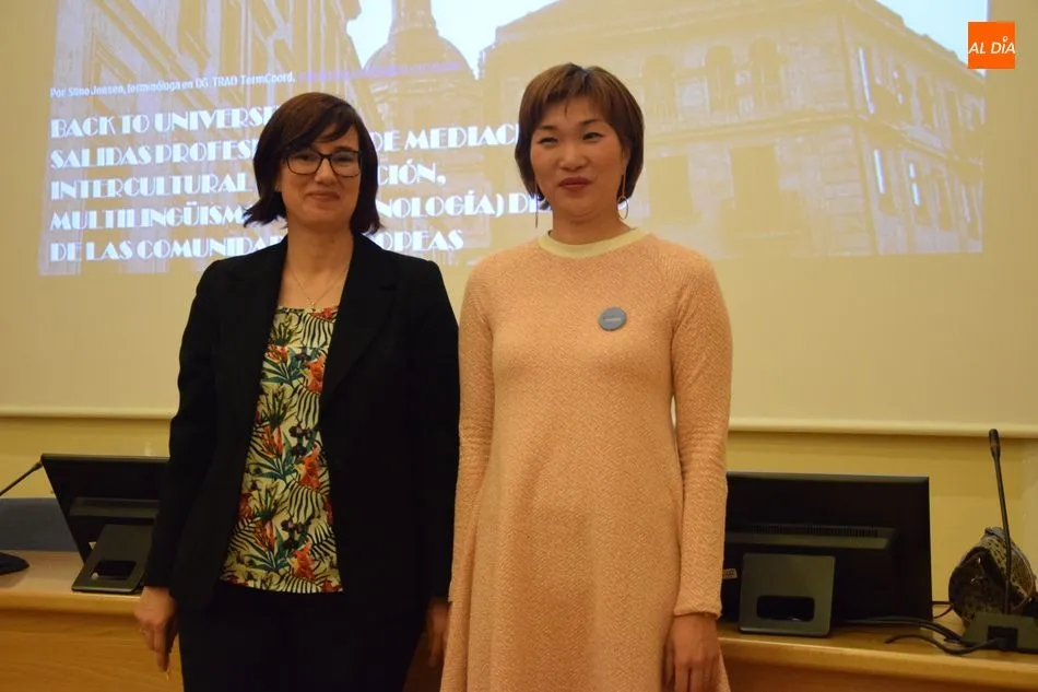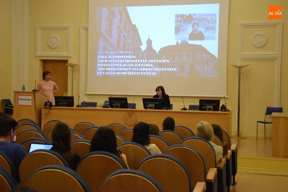 Stine Jensen, terminóloga del Parlamento Europeo ha impartido esta tarde, en el salón de actos de la Facultad de Traducción y Documentación, la charla ?Salidas profesionales de mediación intercultural (traducción, multilingüismo y terminología) dentro de las comunidades europeas? dentro del programa ?Back to University?.