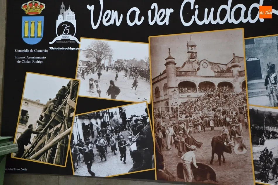 En la jornada del lunes se procedió a reponer la composición de fotografías antiguas que desde las vísperas del Carnaval del Toro 2017 luce, acompañada del lema Ven a ver Ciudad Rodrigo, Forastero!!, en la zona central de la calle Madrid, concretamente en lo que fue en su día el escaparate de un establecimiento comercial que cerró hace unos años.