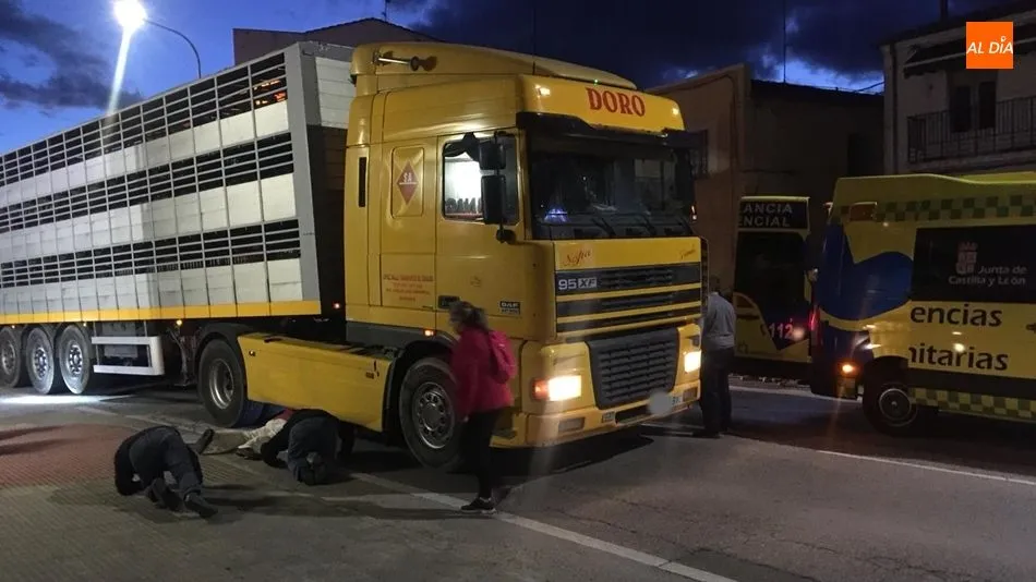 el atropello se abalanzaron bajo el camión para comprobar el estado de la mujer mientras a la par se activaba el protocolo de emergencias, que movilizaba a dotaciones de Policía Local, Guardia Civil, Bomberos y una Ambulancia de Soporte Vital Básico, además de facultativos del Centro de Salud de Peñaranda.