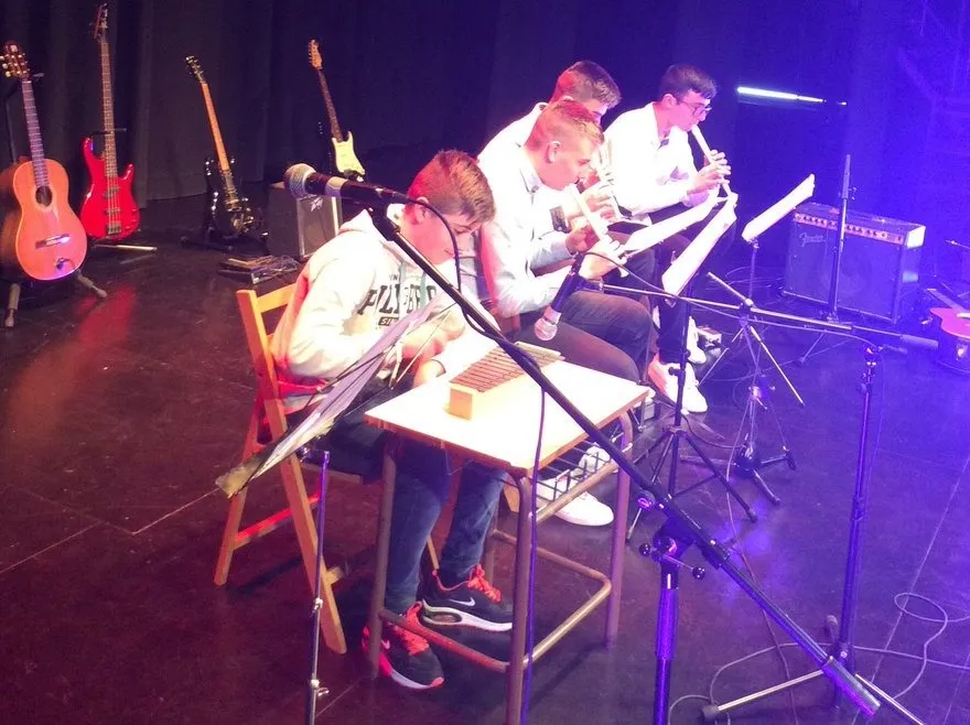 Por ejemplo, Ángel, profesor de Filosofía, tocó la gaita y el tamboril, mientras que Antonio, docente de Educación Física, tocó el bajo junto a sus compañeros de grupo. En lo que respecta a los alumnos, abarcaron varios estilos, desde la música clásica hasta el rap.