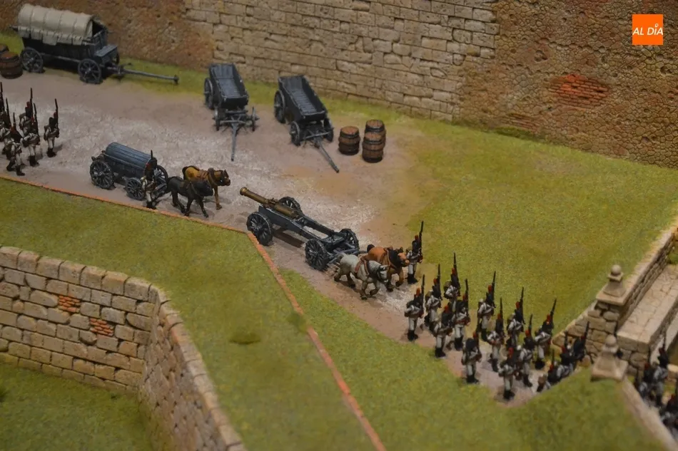 Según explicó Alberto Mateos Jurado, la creación de estas maquetas ha requerido de tres meses de investigación y otros tres de construcción, para lo que ha contado con la ayuda de su mujer, Silvia. Ambas maquetas cuentan con numerosas figuras de animales y soldados, entre los que se recrea al Regimiento de Mallorca, ya que acudió a ayudar a la ciudad durante la Guerra de la Independencia.