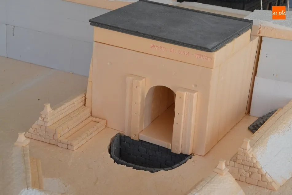Mientras, la otra maqueta de la Puerta del Conde presenta un momento bien diferente. Debido a los conflictos bélicos, Ciudad Rodrigo decide sustituir (en un proceso que dura de 1707 a 1810) la antigua muralla alta y delgada por una de menor altura pero con mayor anchura para poder tener en la misma artillería (se habilitan las cañoneras y varios baluartes).