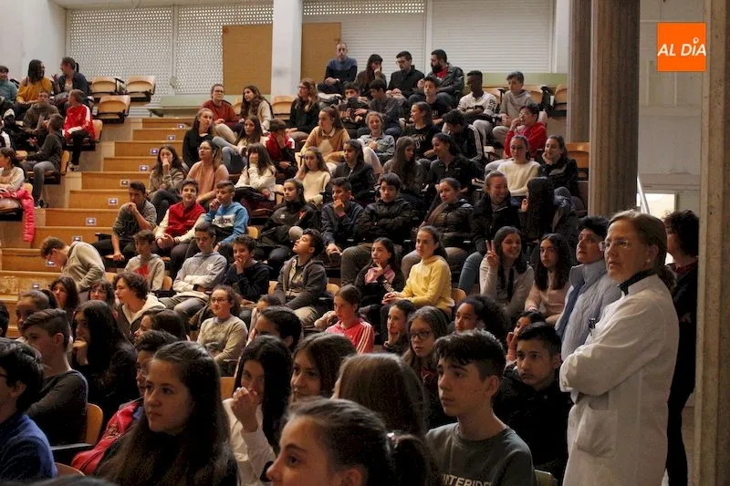 Visitó el centro educativo salmantino para charlar con los alumnos mientras se recupera de las lesiones sufridas tras su aparatosa caída en el Rally Dakar
