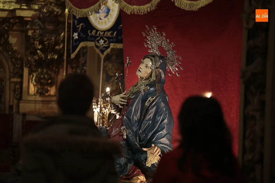 Ambiente semanasantero en la iglesia de la Vera Cruz, allí donde todo acaba y empieza. La cofradía decana de la Semana Santa, en la que la Pasión se ve, respira y vive, ha iniciado este jueves los cultos a la Virgen de los Dolores.