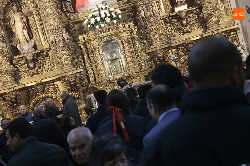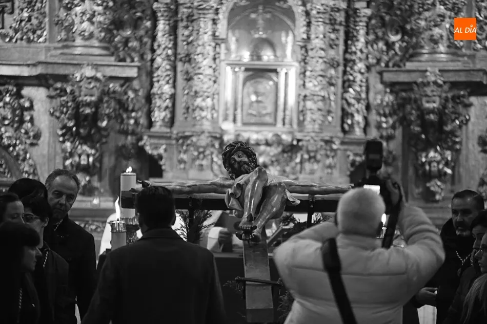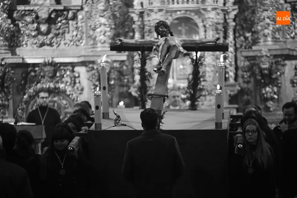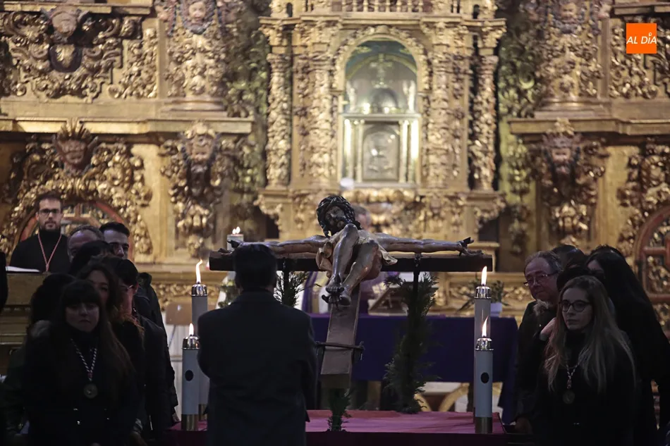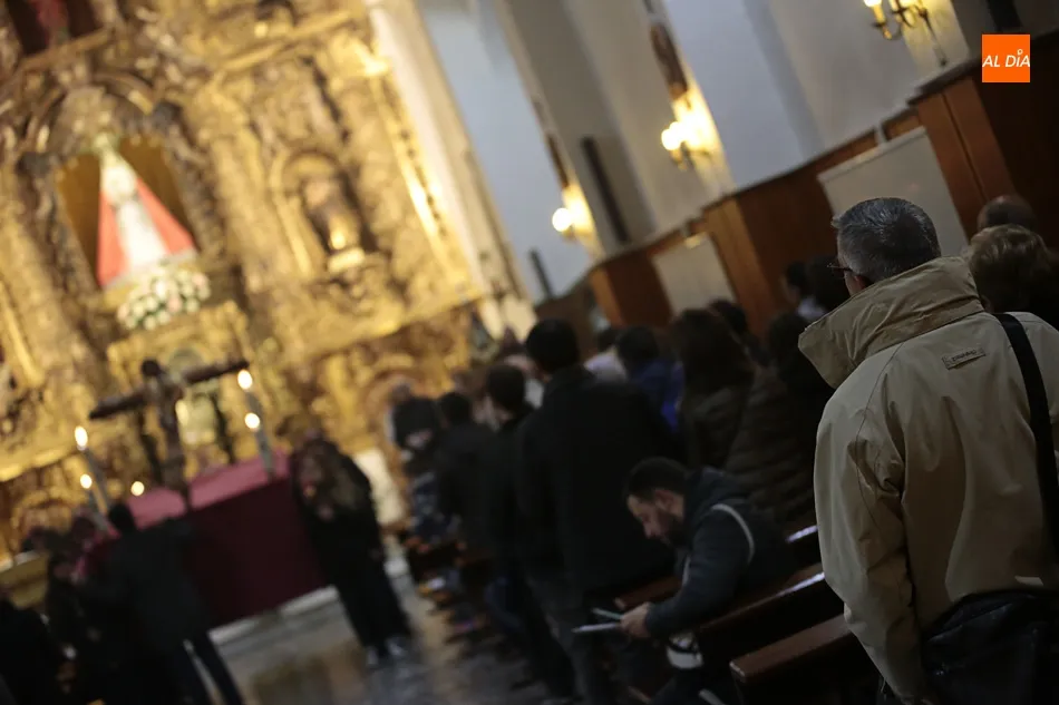 Devoción en Tejares también en Cuaresma. La Cofradía del Cristo Yacente ha vuelto a organizar el Via Crucis con el Cristo de la Salud en este barrio de Salamanca, que demuestra que no sólo rinde culto a su Virgen.
