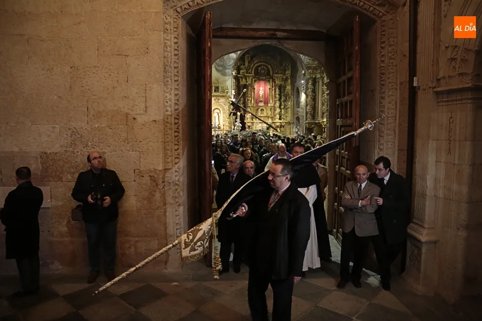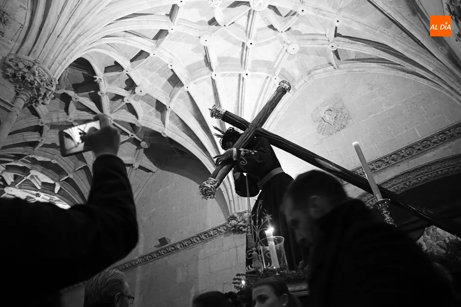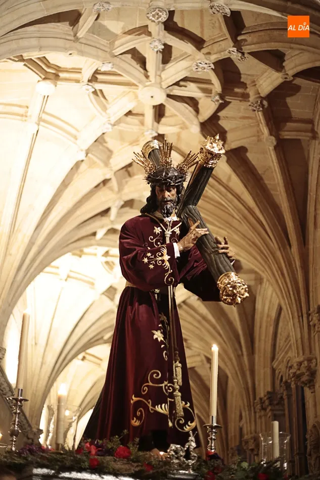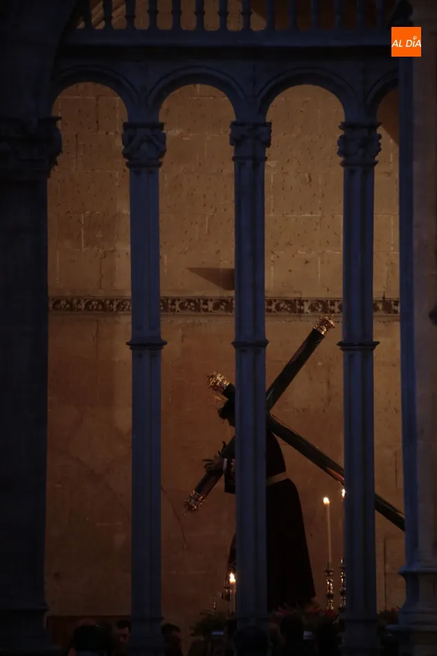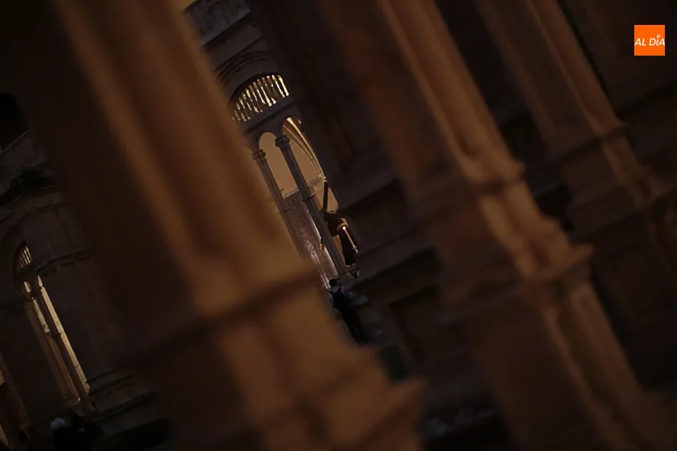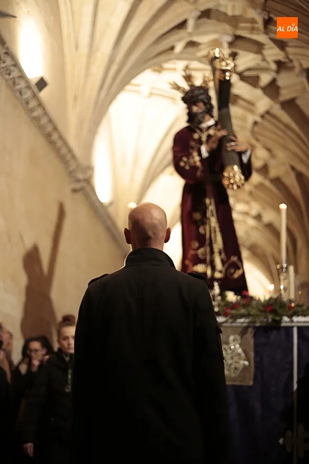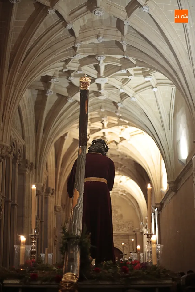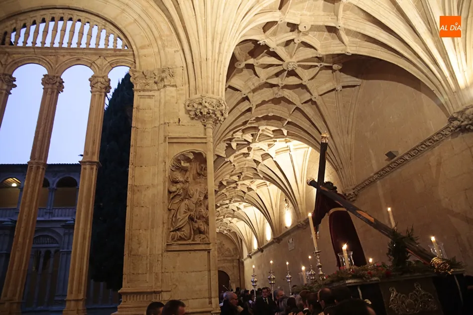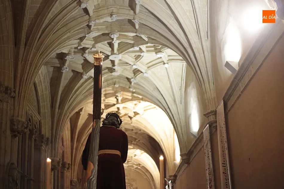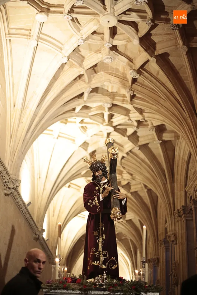 La lluvia no ha permitido que Jesús de la Pasión saliese esta noche a las calles de Salamanca, pero no así la celebración de su Via Crucis. El incomparable marco del Claustro de los Reyes, en el Convento de los Dominicos, nos ha dejado unas bellísimas estampas y ha permitido a los presentes sentir más de cerca la Pasión.
