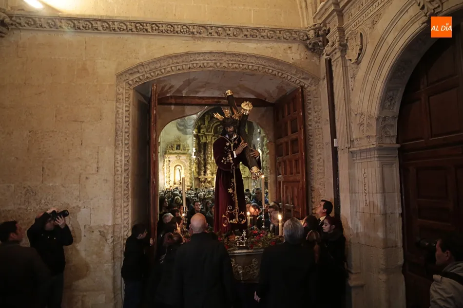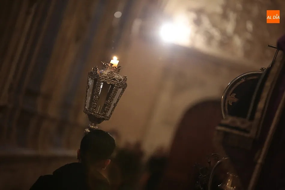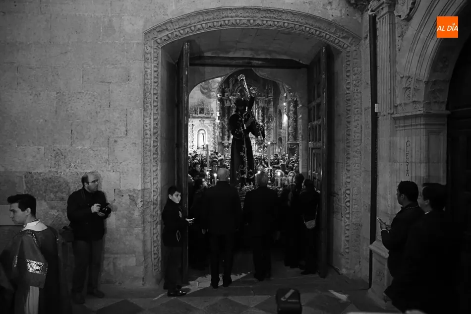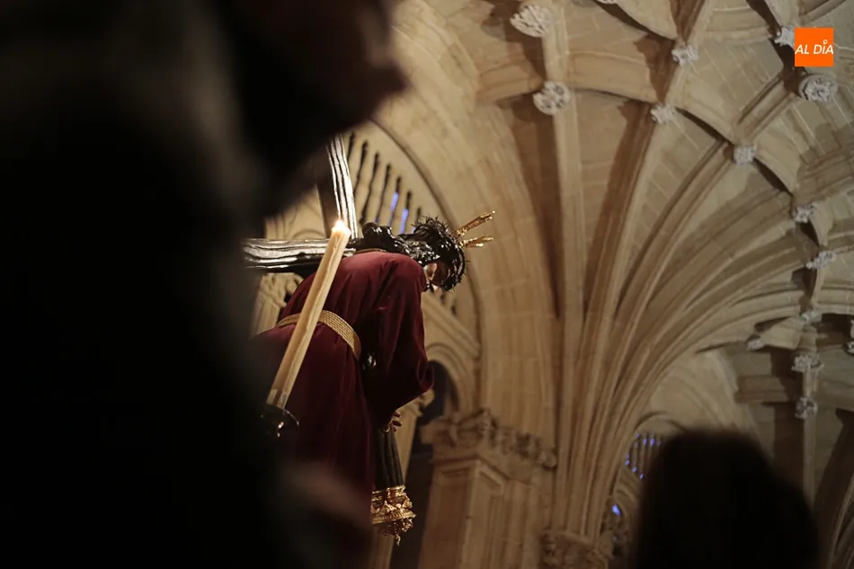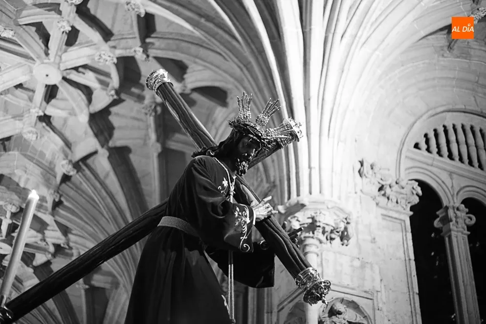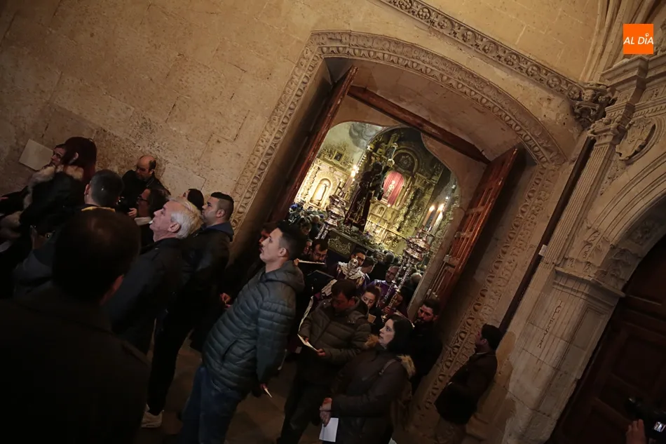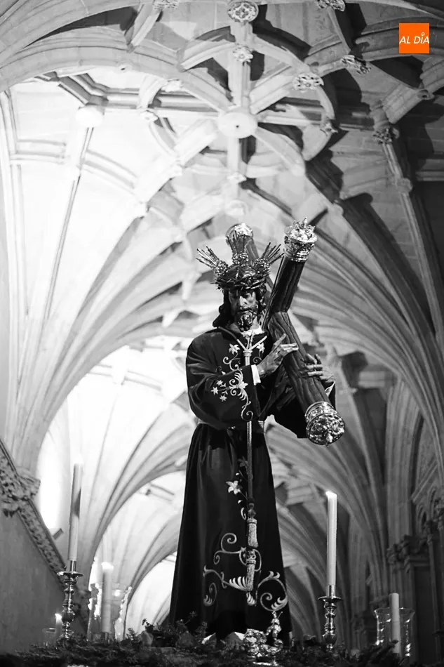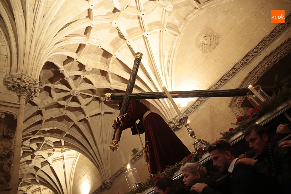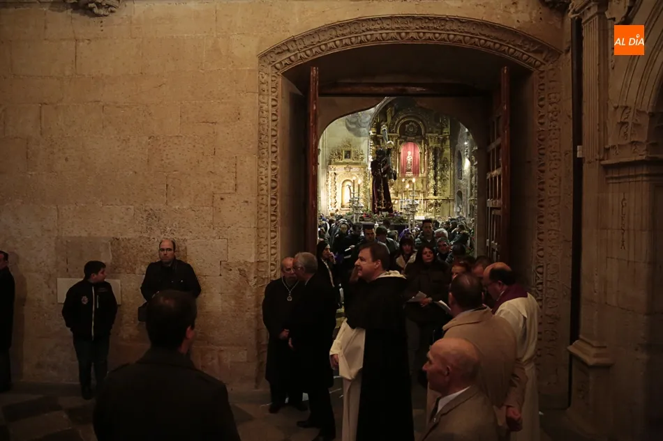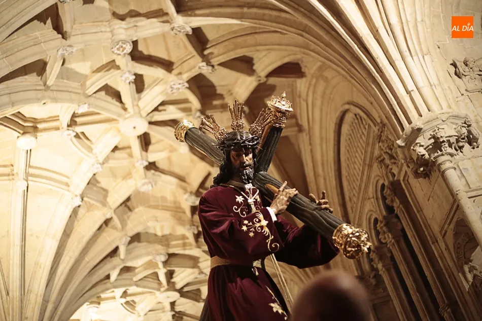 La lluvia no ha permitido que Jesús de la Pasión saliese esta noche a las calles de Salamanca, pero no así la celebración de su Via Crucis. El incomparable marco del Claustro de los Reyes, en el Convento de los Dominicos, nos ha dejado unas bellísimas estampas y ha permitido a los presentes sentir más de cerca la Pasión.