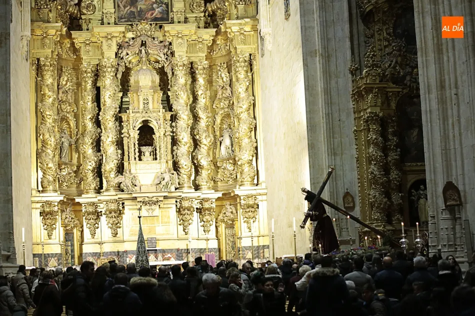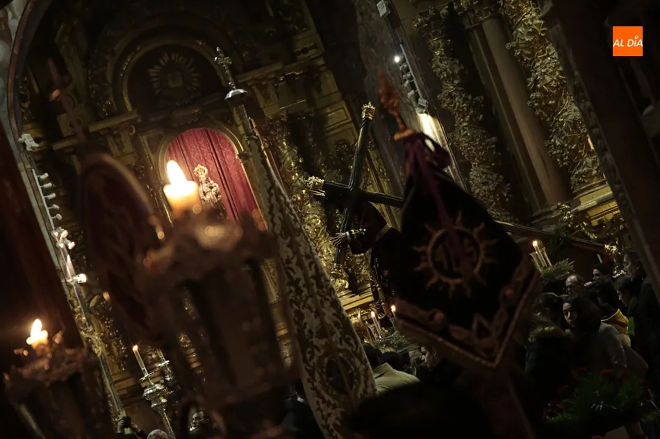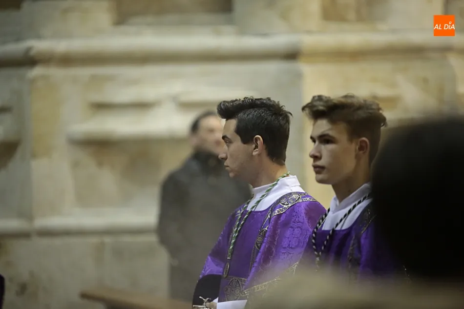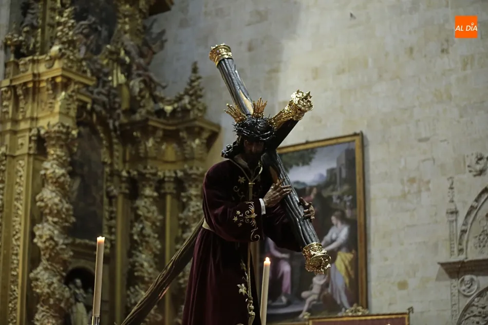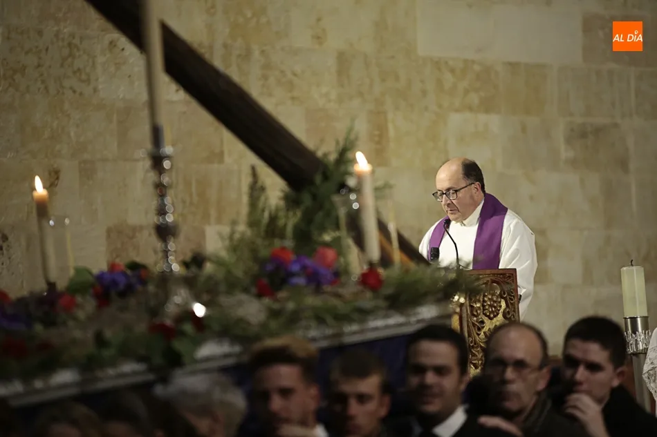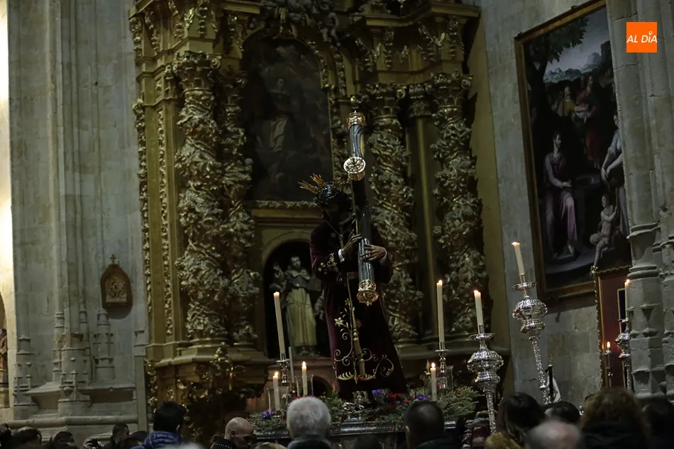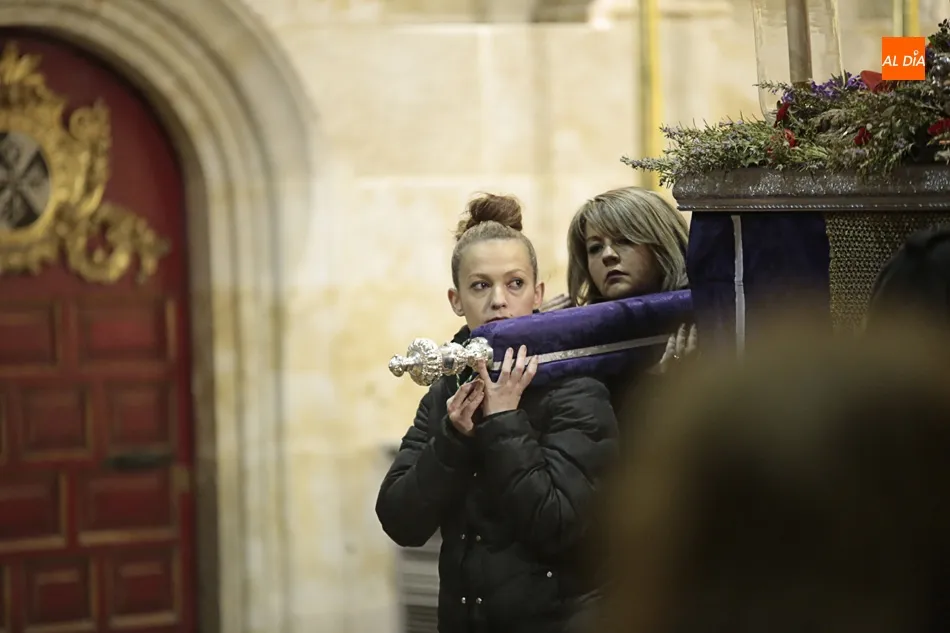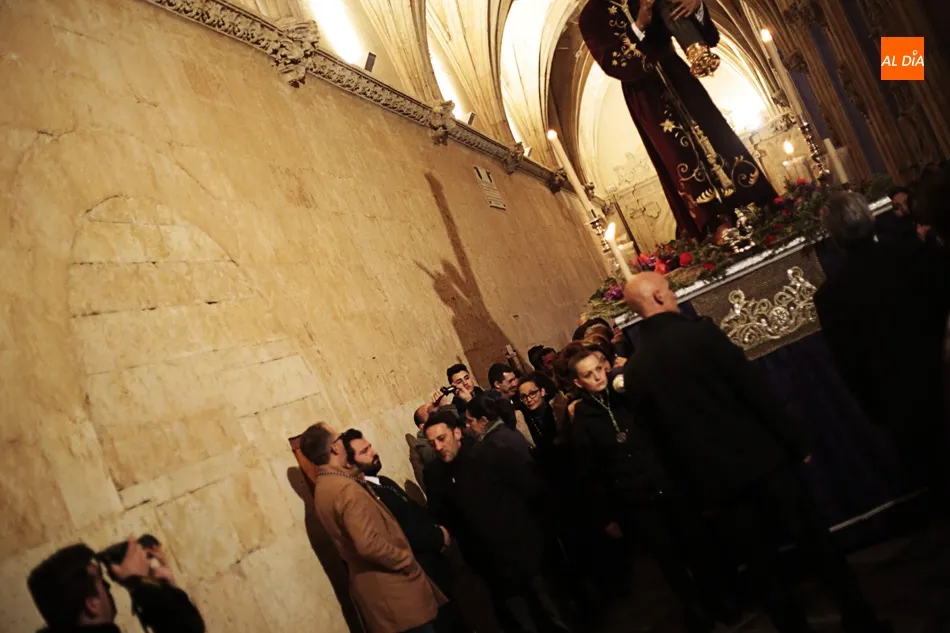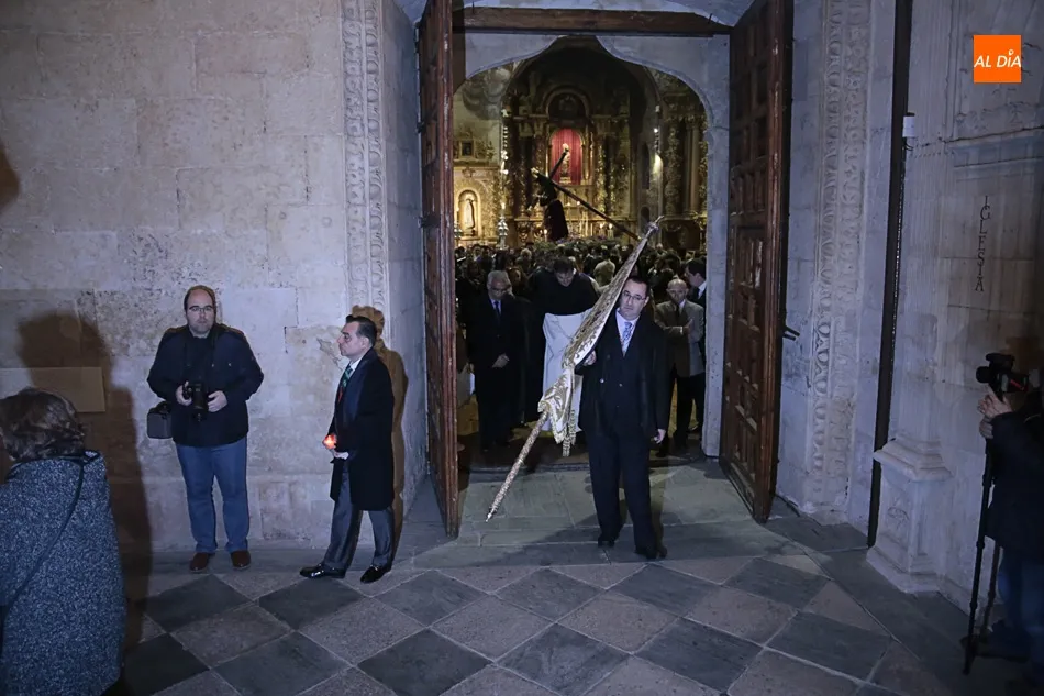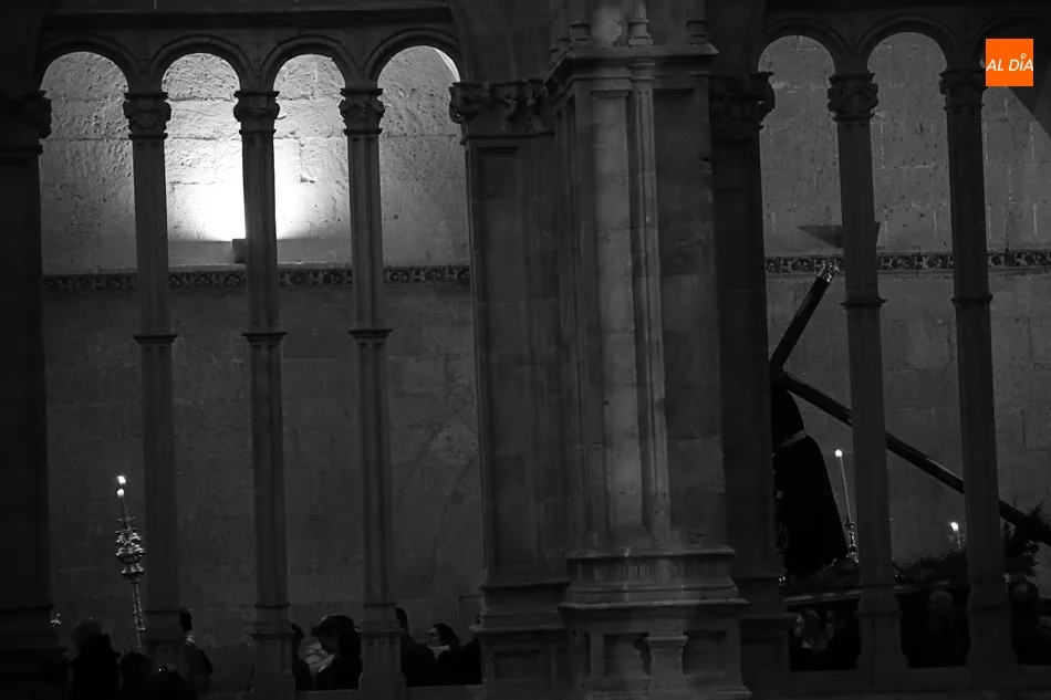 La lluvia no ha permitido que Jesús de la Pasión saliese esta noche a las calles de Salamanca, pero no así la celebración de su Via Crucis. El incomparable marco del Claustro de los Reyes, en el Convento de los Dominicos, nos ha dejado unas bellísimas estampas y ha permitido a los presentes sentir más de cerca la Pasión.