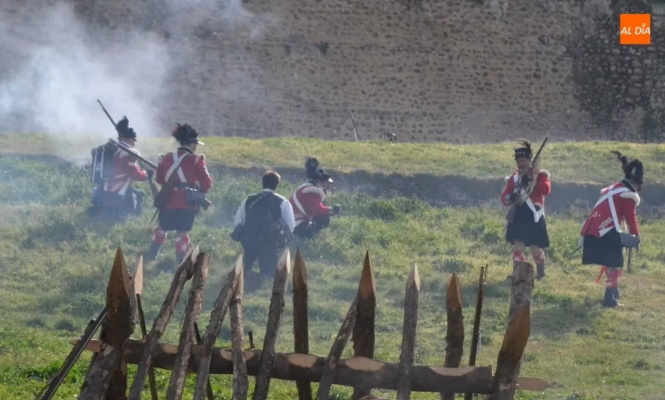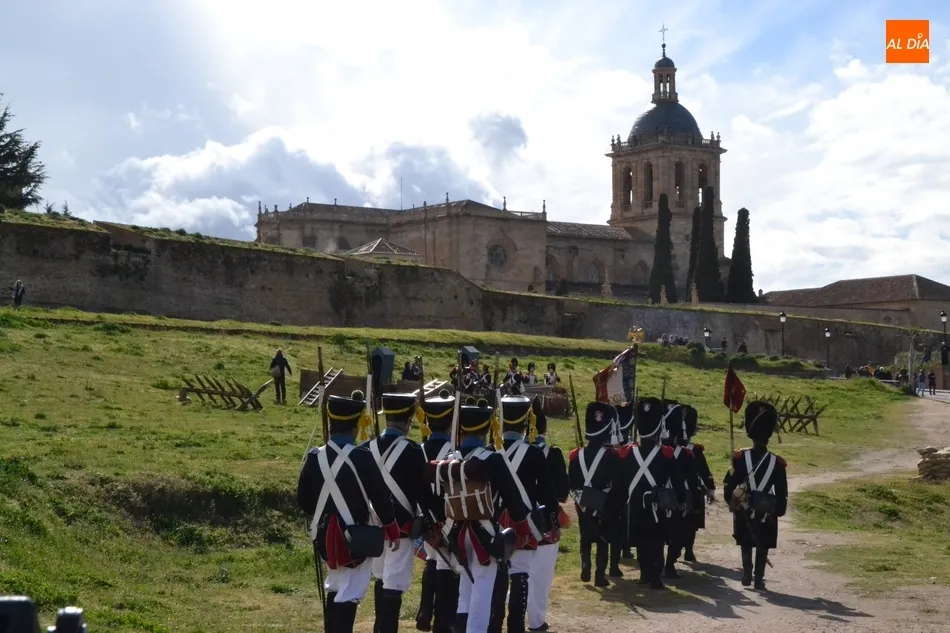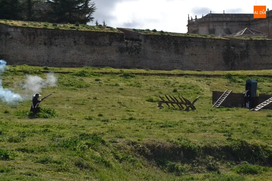Las tropas aliadas iniciaron un primer ataque que hizo retroceder a los franceses, aunque estos lograron recuperar posiciones antes de que por fin los aliados fueran avanzando hasta llegar a la muralla, simulando en las Puertas de Amayuelas la Brecha Pequeña por la que entraron, (se había tapado la bóveda grande -ya que no existía en ese momento histórico- y la bóveda pequeña hizo de brecha para entrar dentro de murallas).