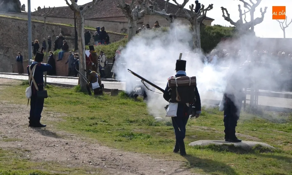 La recreación del asedio se concentró en el glacis donde está situado el antiguo Centro Receptor de Visitantes. Allí tenía instalado un puesto de defensa el ejército francés, desde donde intentó ir repeliendo los ataques que le hacían las fuerzas aliadas que se habían adentrado en el glacis con sus armas y sus cañones, que hicieron que toda la ciudad se enterase de lo que estaba ocurriendo.