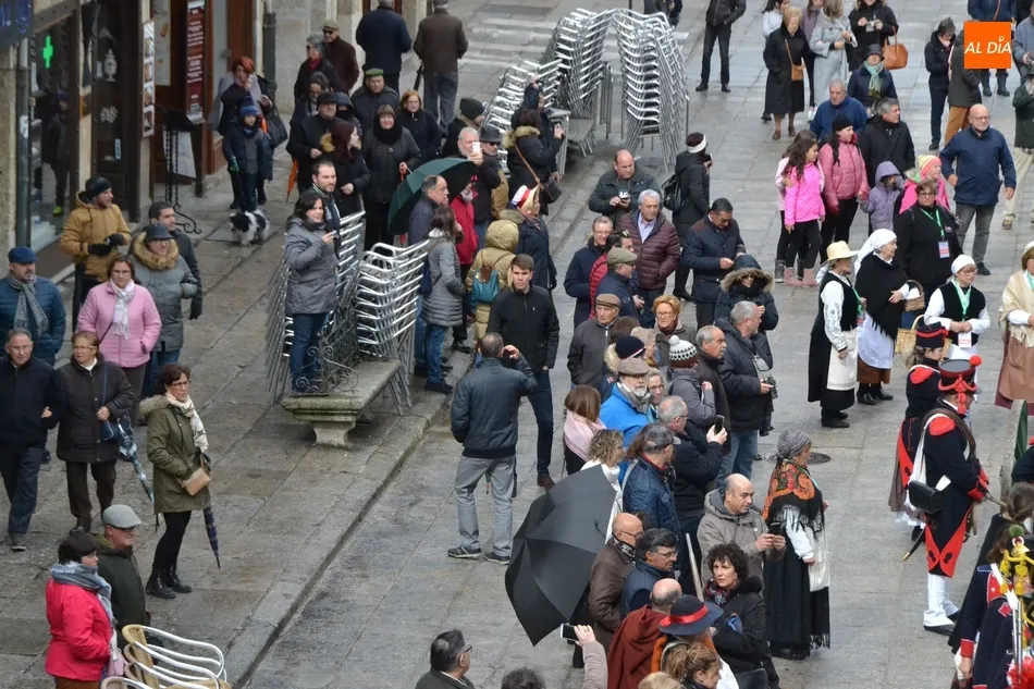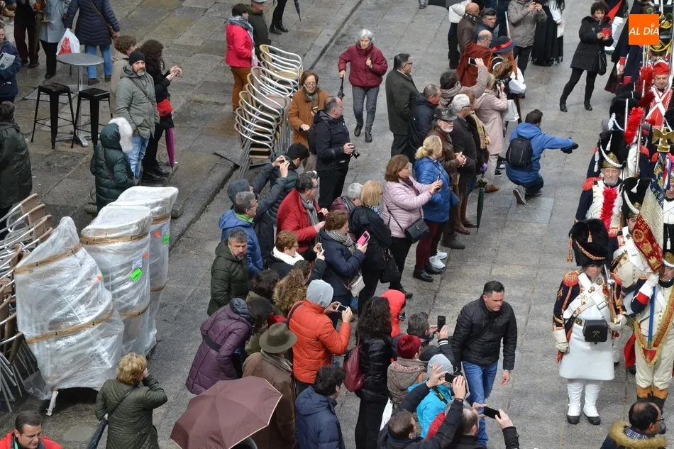 Estando formadas las tropas en la Plaza, los generales de los distintos ejércitos pasaron revisión, para a continuación regresar al Paseo Fernando Arrabal, en este caso por la Rúa del Sol. Una vez en la zona de los antiguos jardines Bolonia, uno de los ejércitos lanzó un cañonazo, siendo momento para realizar numerosas fotografías de recuerdo. Concluido el acto en sí, se pudo ver a soldados portugueses preparando munición en los soportales del Cuerpo de Guardia del Registro.