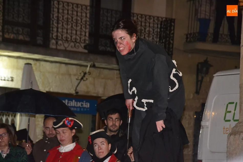 La jornada sabatina de la Recreación Histórica Napoleónica concluyó con la reaparición en las calles mirobrigenses, más de dos siglos después de su muerte, de la heroína local Lorenza Iglesias, que volvió a cobrar vida de la mano de Popy Vegas, quién ha venido interpretándola en los últimos años en la exitosa Ruta de los Malditos.