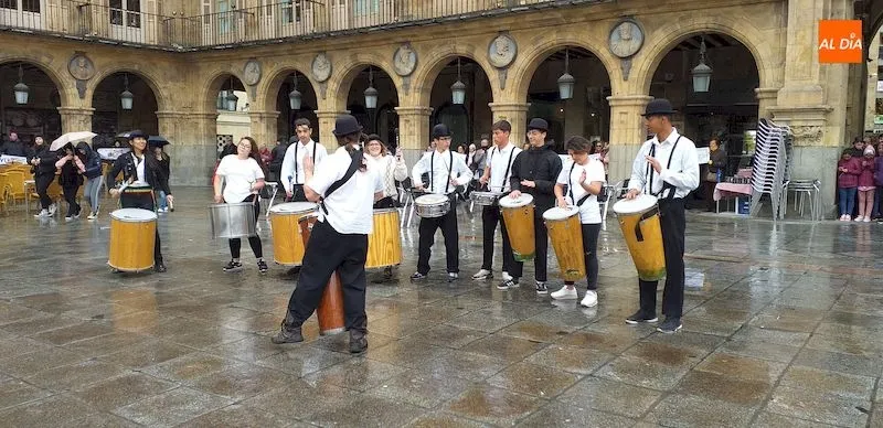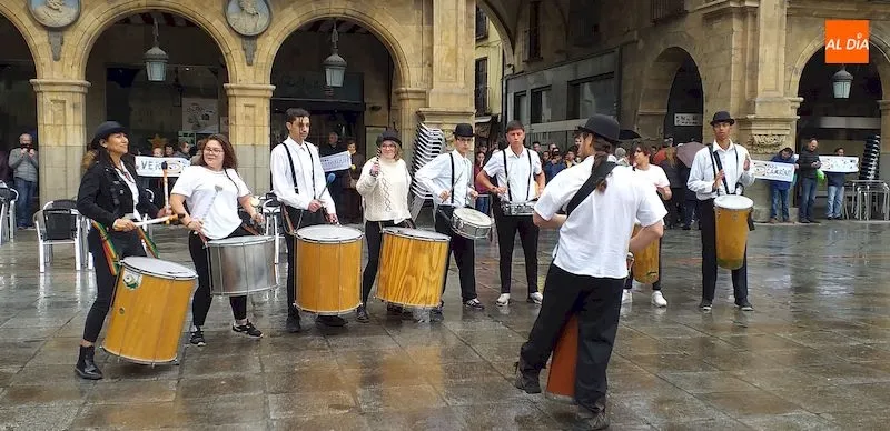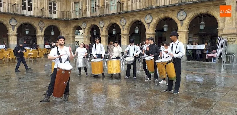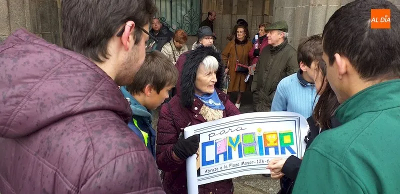 Los arcos de la Plaza Mayor fueron ocupados por los presentes con el fin de hacer un llamamiento a todos.