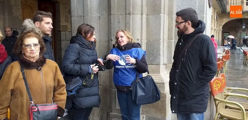 Manos Unidas celebró el tradicional ?Abrazo solidario? y una jornada de convivencia en la Plaza Mayor. Se trata de un acto de sensibilización y reivindicación sobre la desigualdad existente en la distribución de recursos en el mundo, tratando de reclamar atención para personas que viven con numerosos problemas en el planeta al sufrir falta de agua, entre otro tipo de cosas.