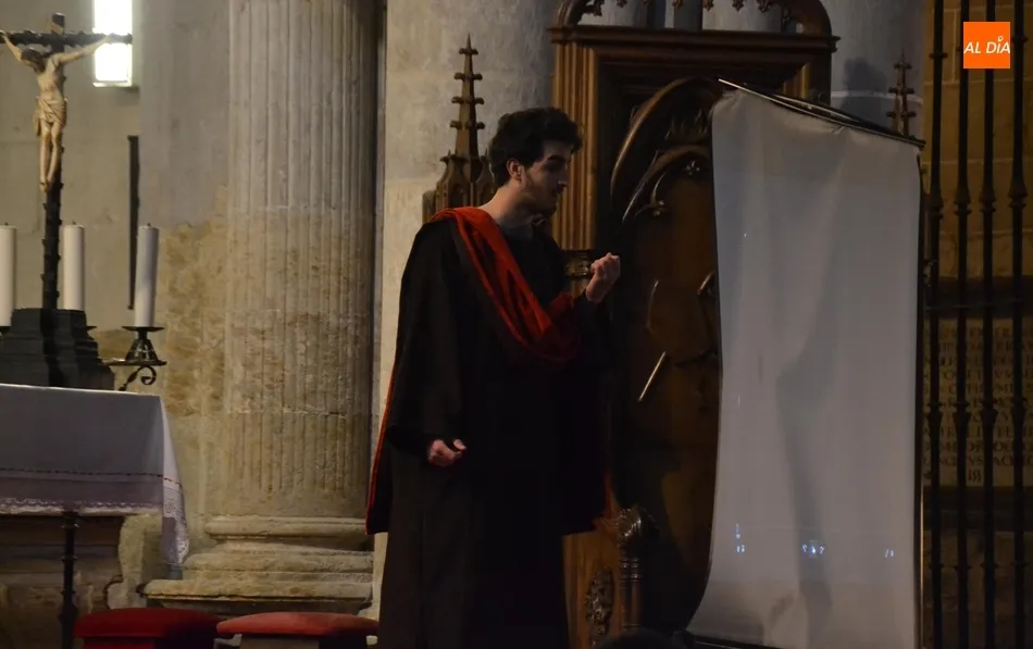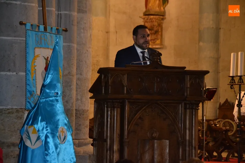 En un marco diferente al habitual, la Catedral de Santa María, debido a la ocupación del Teatro Nuevo Fernando Arrabal por el programa de radio No es un día cualquiera, el director de cine Pablo Moreno, máximo responsable a su vez de las representaciones de La Pasión, ofreció en la tarde del sábado el pregón de la Semana Santa Mirobrigense 2019.