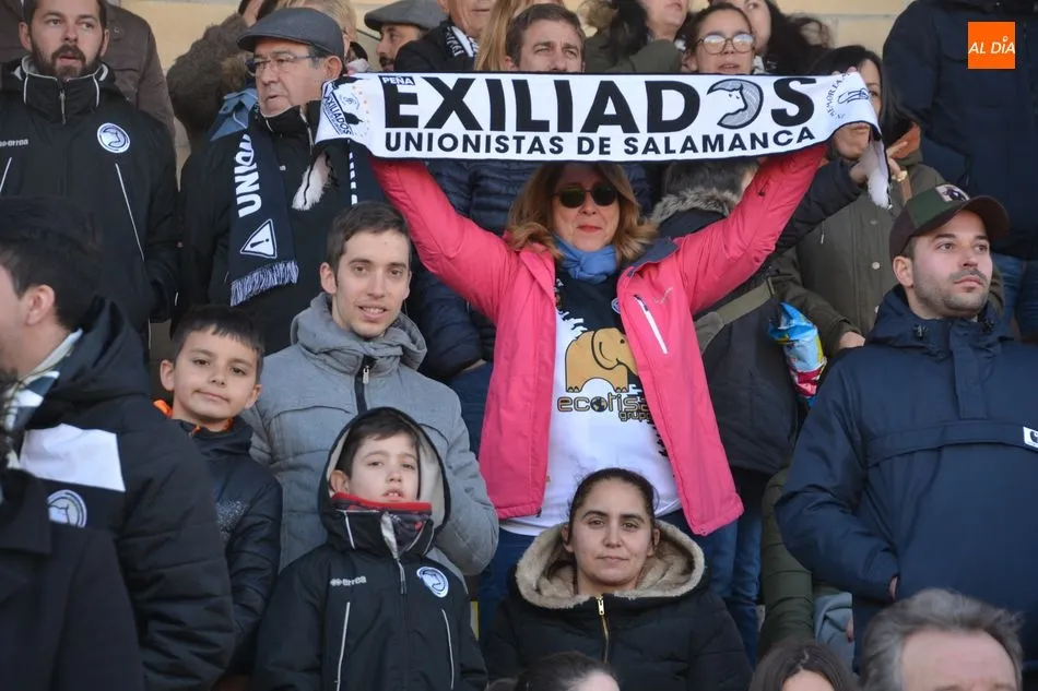 Fue conforme avanzaba la primera mitad cuando Unionistas se fue haciendo con el control del juego. La banda derecha del conjunto charro, con Piojo en el lateral y Javi Navas de extremo, fue la que más peligro generó por parte del conjunto blanquinegro. Los centros de Navas desde la banda al corazón del área eran repelidos por la zaga burgalesa. En uno de ellos, De la Nava no consiguió acertar a rematar el balón en una de las ocasiones de mayor peligro de los locales.