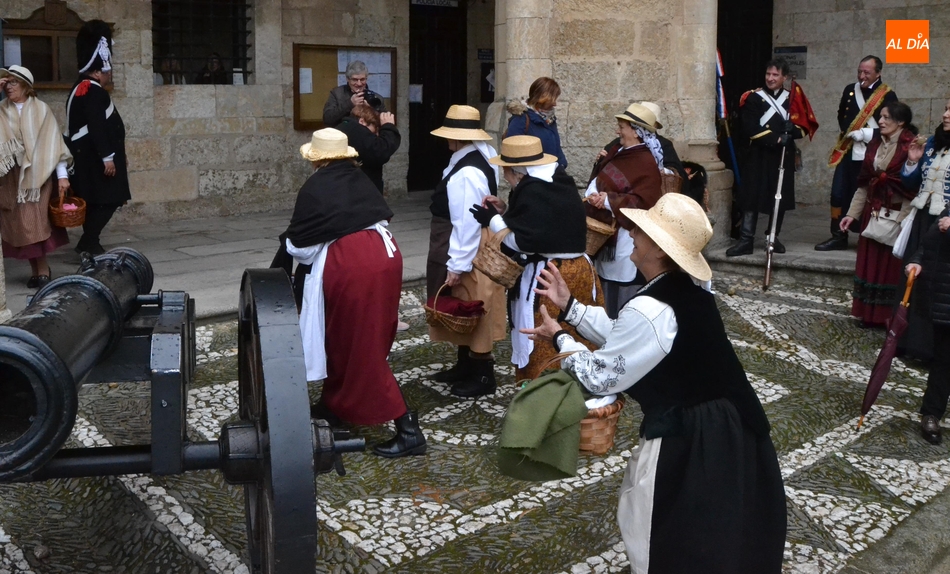 El tramo final de la Recreación Histórica Napoleónica incluyó una particular ?batalla? en la que no tomaron parte ninguno de los soldados que han sido protagonistas de este bélico fin de semana. Esta última batalla (que tuvo lugar en la Plaza Mayor en los instantes previos a la clausura) fue un duelo entre las integrantes de Amanecer ataviadas de época que han participado en la Recreación y los miembros de la actual Corporación Municipal que se acercaron a la clausura.