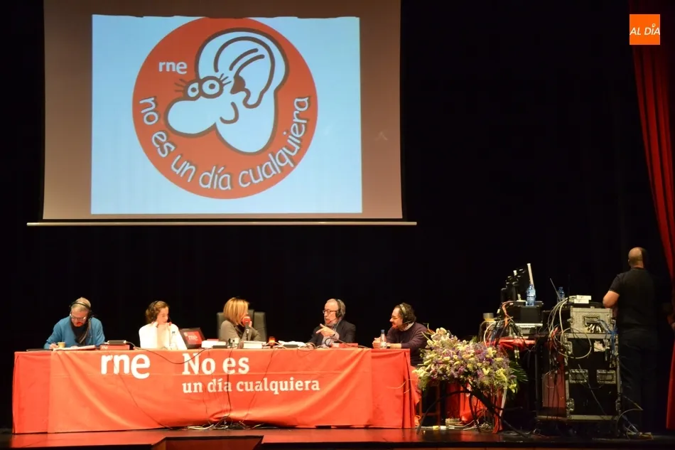 El Teatro Nuevo Fernando Arrabal albergó durante la mañana del domingo, al igual que ya había ocurrido el sábado, la emisión desde Ciudad Rodrigo de No es un día cualquiera, el programa de fin de semana de Radio Nacional de España que presenta Pepa Fernández con la compañía de un nutrido grupo de colaboradores, parte de los cuales se han desplazado a Miróbriga.