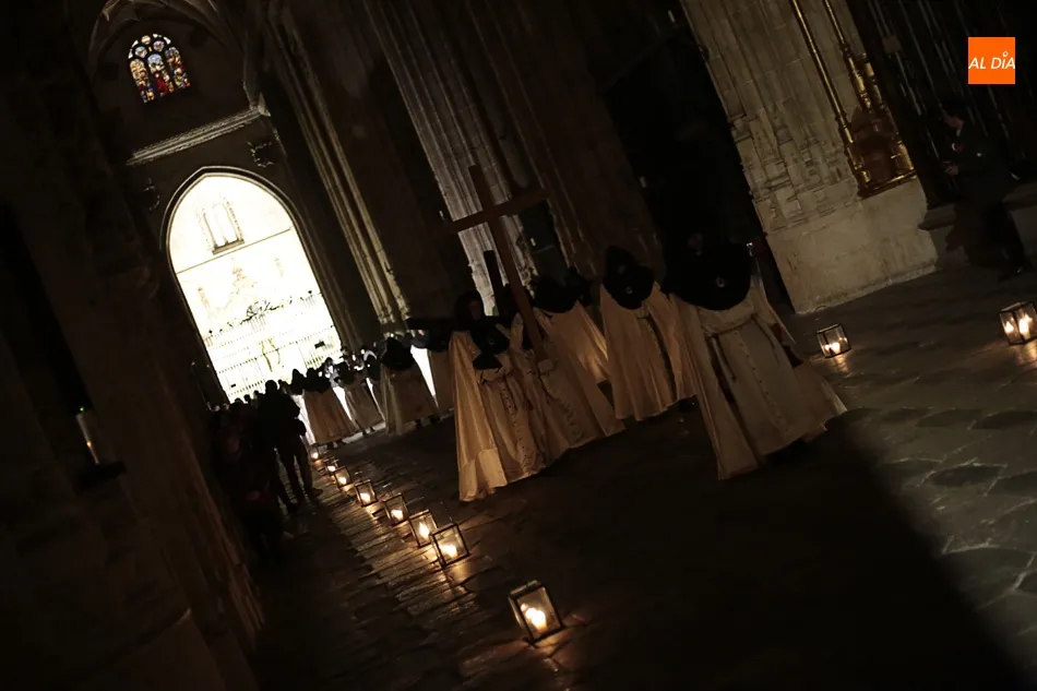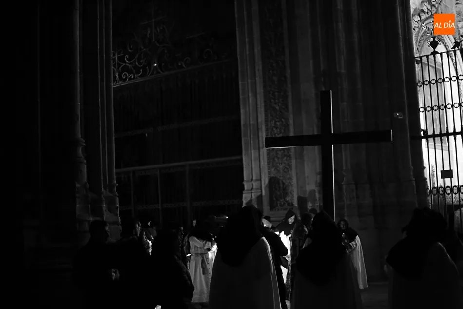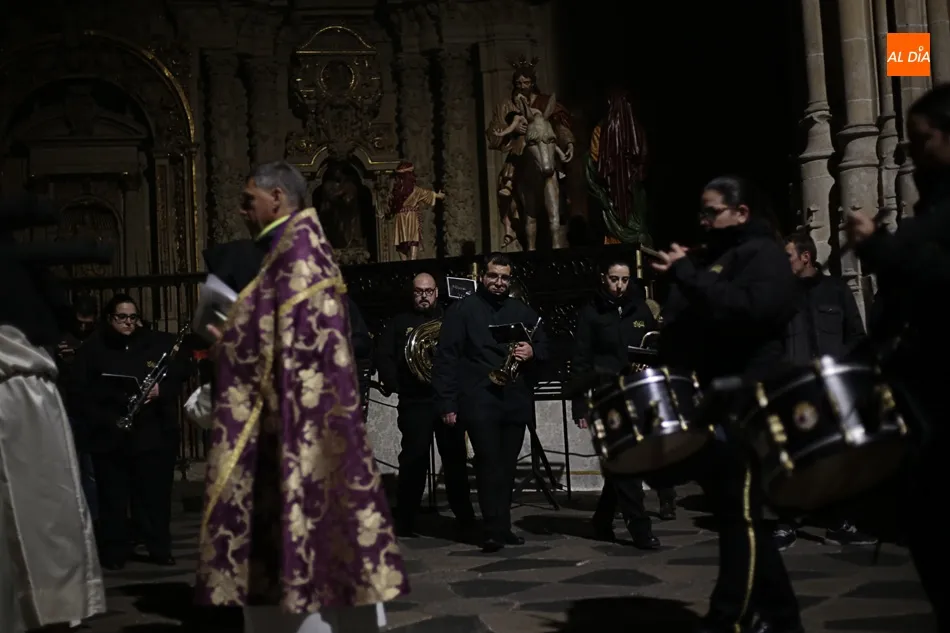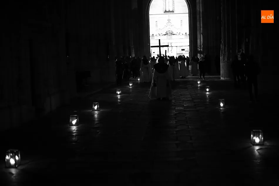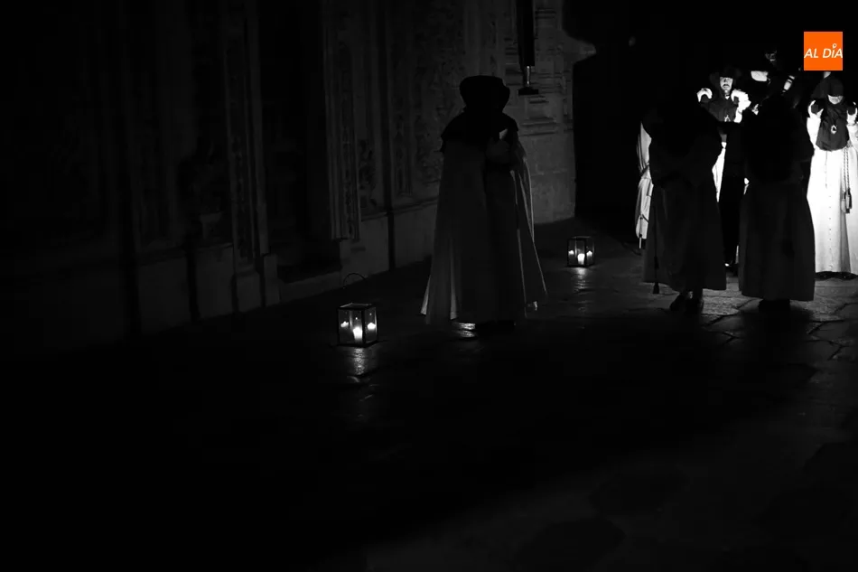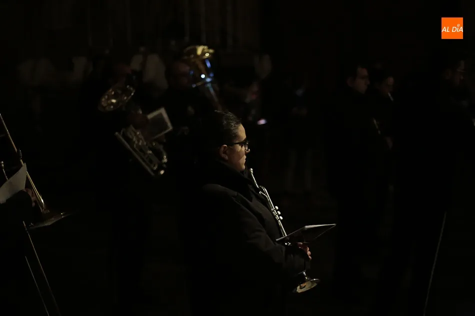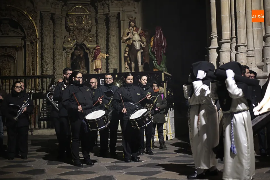 Recogimiento más allá de la media noche, bajo las imponentes bóvedas, a la luz de los faroles y con los sones de la capilla de la Agrupación Musical La Expiración.