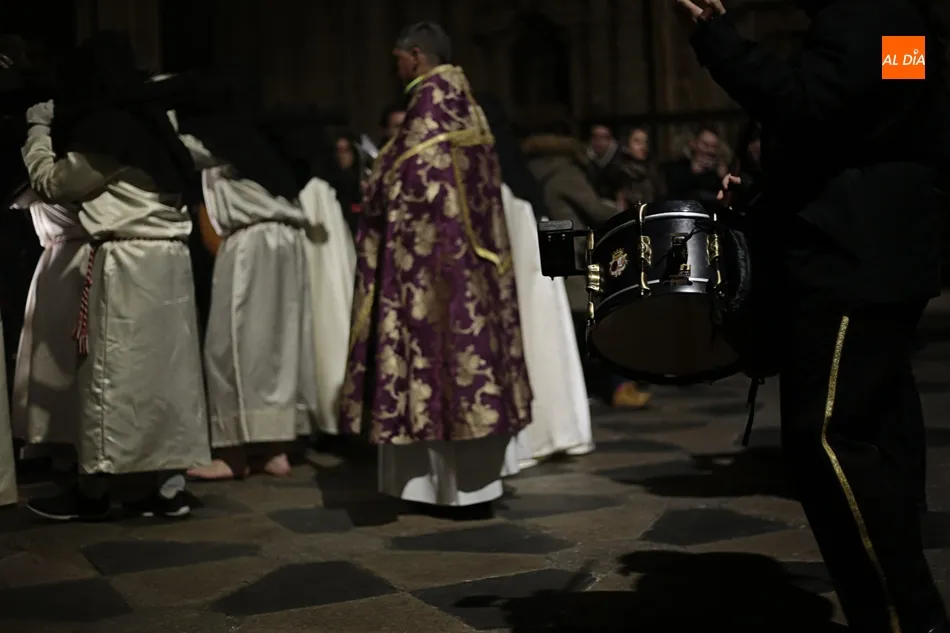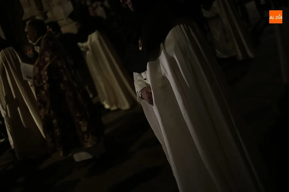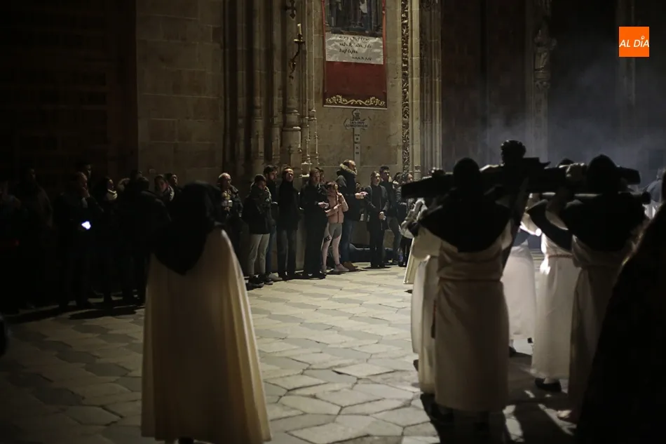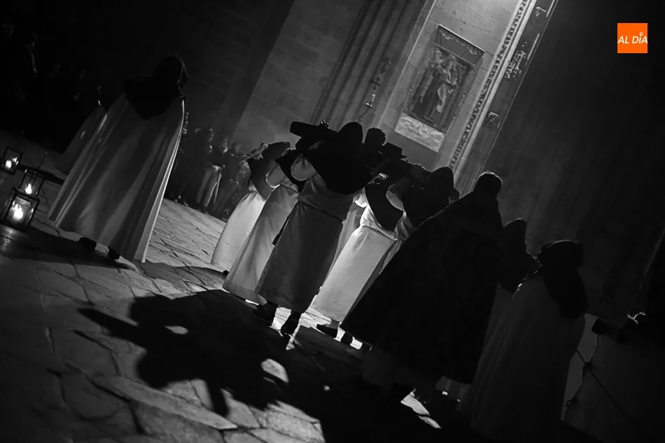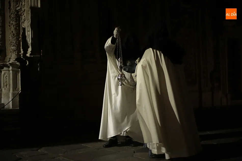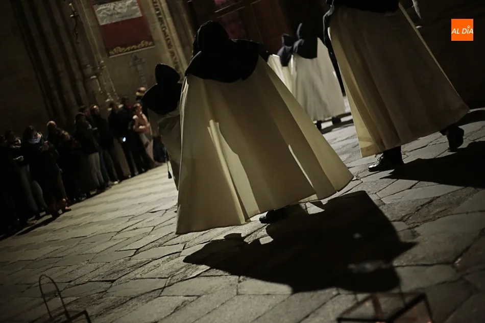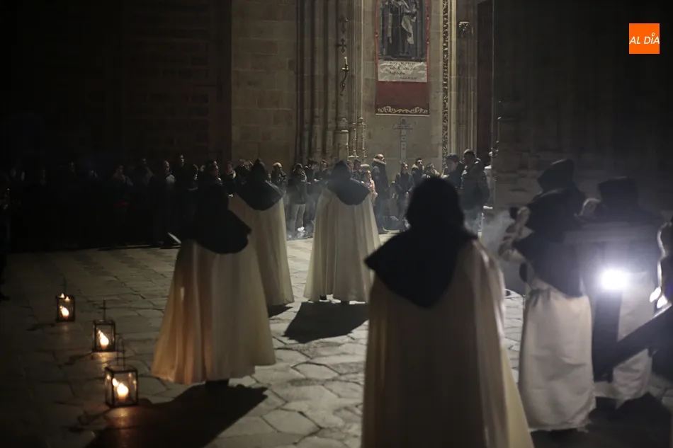 Recogimiento más allá de la media noche, bajo las imponentes bóvedas, a la luz de los faroles y con los sones de la capilla de la Agrupación Musical La Expiración.