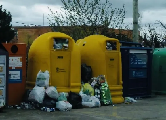 Durante este fin de semana, dos lectores diferentes nos han transmitido la misma queja, la presencia de contenedores de reciclaje a rebosar en el cruce donde confluyen la calle Beltrana, la Baja del Teso y la calle Teso de la Feria. En la fotografía puede apreciarse cómo los contenedores de basura están a rebosar, por lo que hay fuera, tirados sobre la acera, cartones y demás residuos.