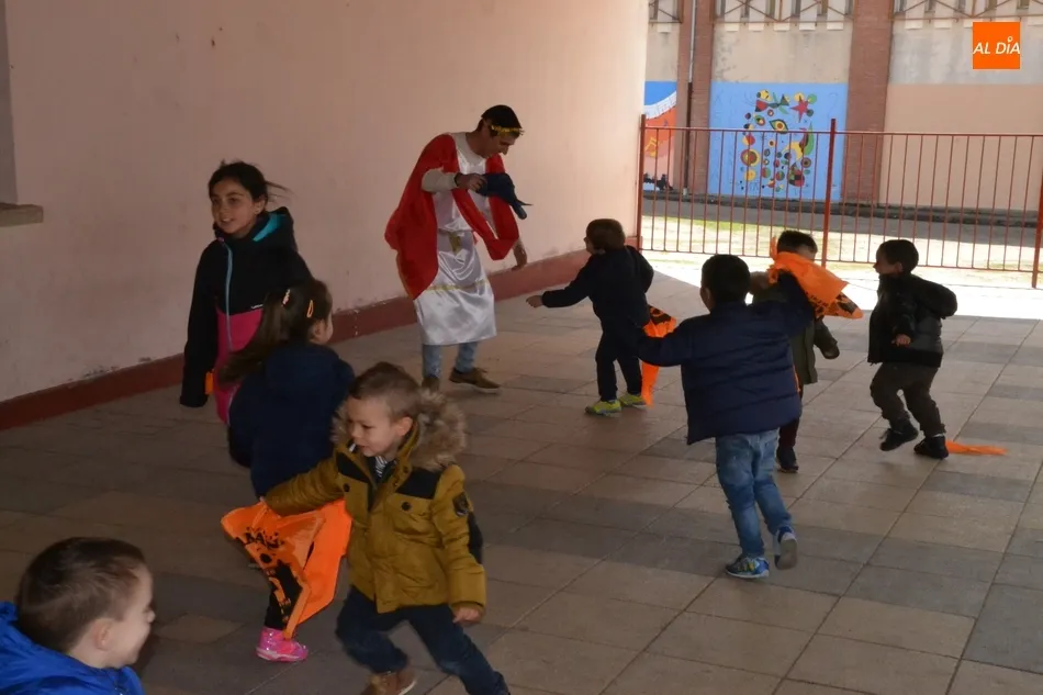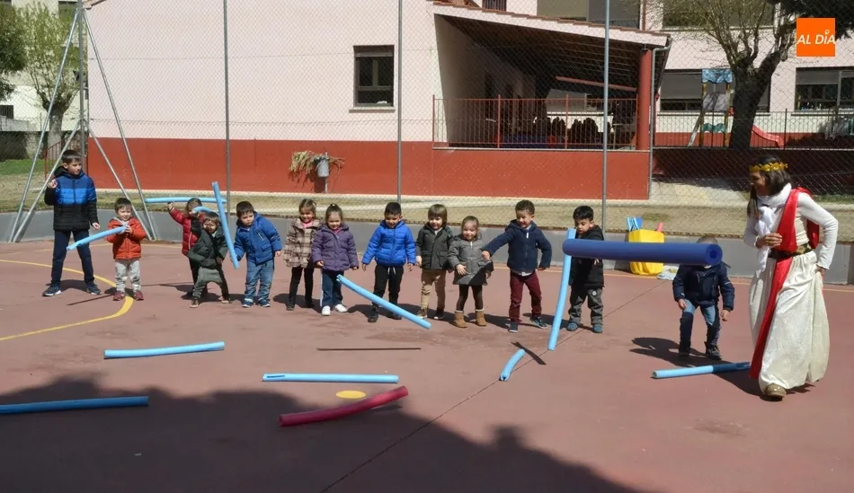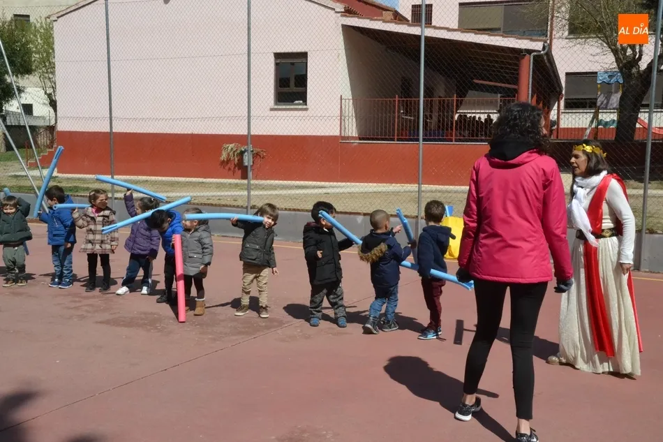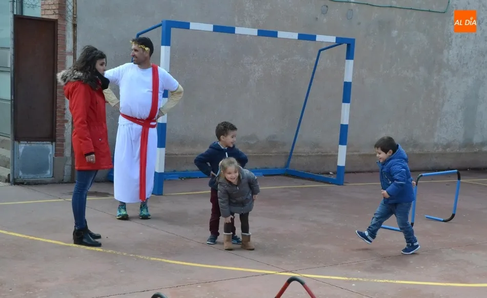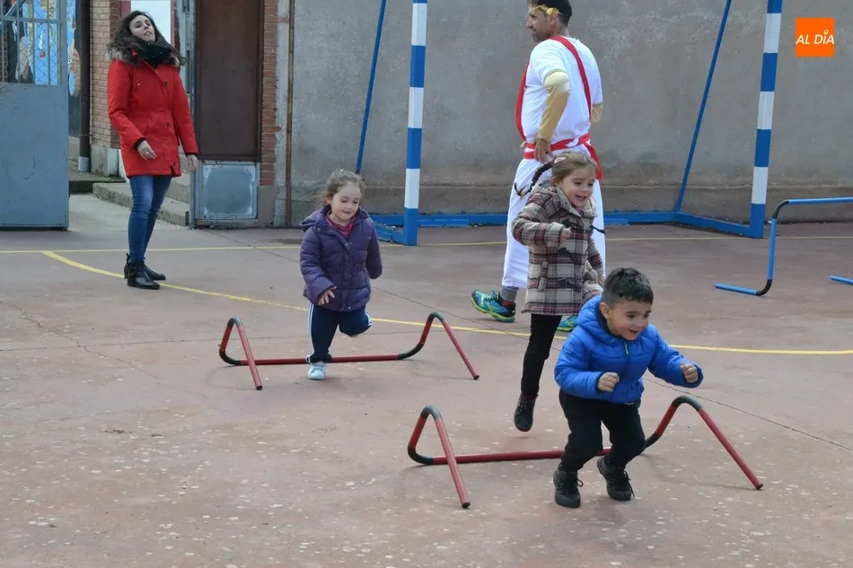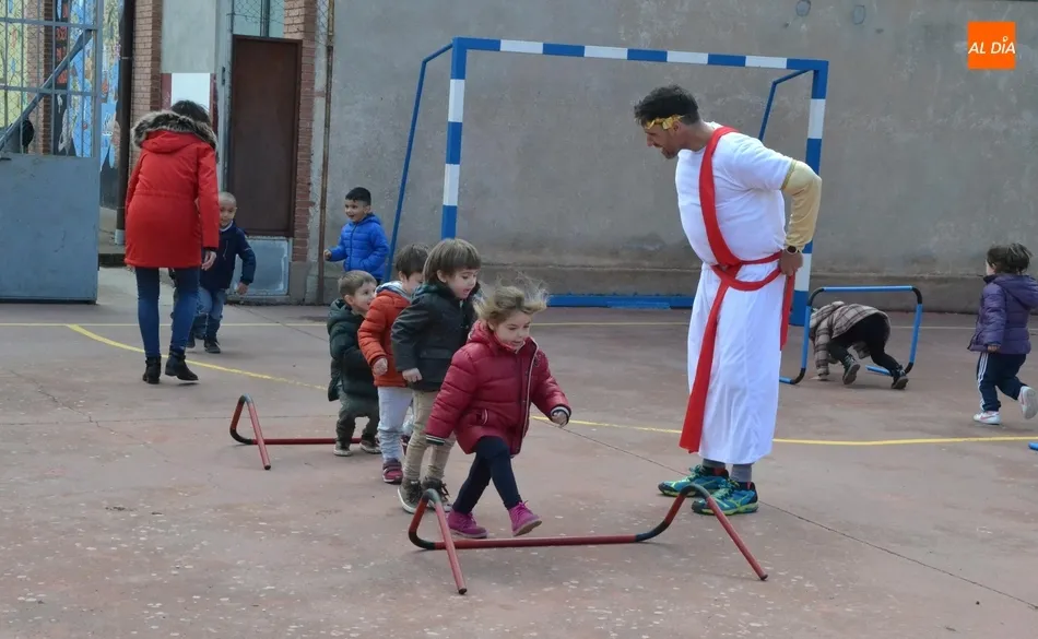 Tras haber arrancado la Semana en la Prehistoria, en la mañana del lunes fue turno para la Edad Antigua, escogiendo como referencia los Juegos Olímpicos de la Antigüedad. En este sentido, el patio del centro se convirtió en un complejo deportivo con varias pruebas a las que se fueron midiendo a lo largo de la mañana todos los alumnos (en el primer tramo de la mañana, los de Primaria, y después del recreo, los de Educación Infantil y Especial).